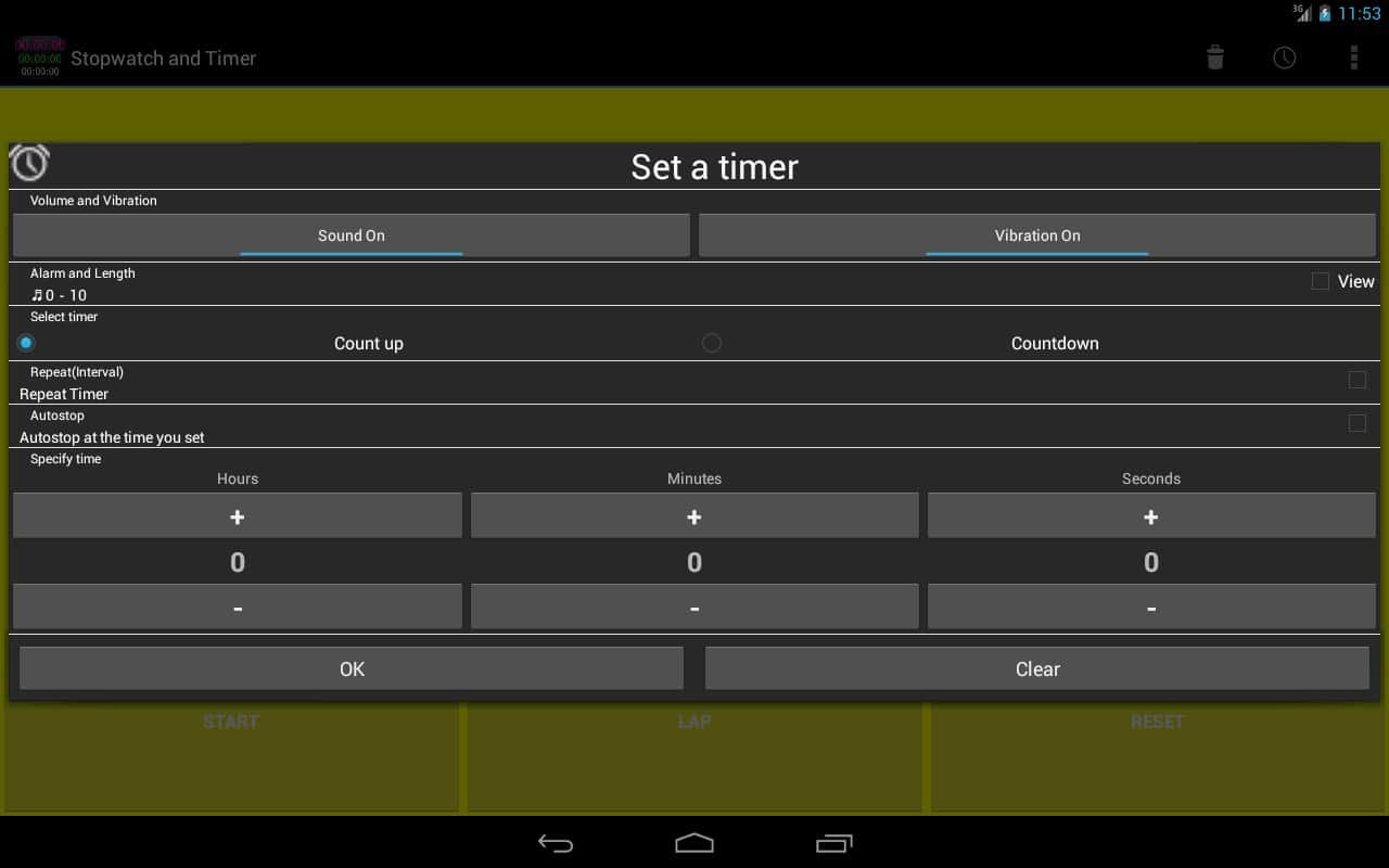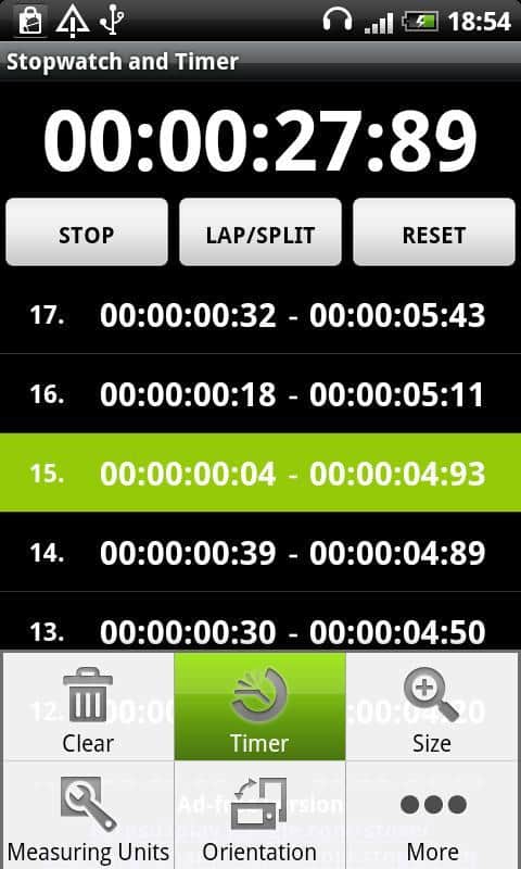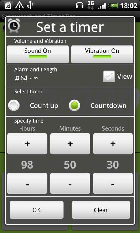StopWatch & Timer Pro – хорошее приложение для андроид, два в одном, таймер и секундомер для вашего смартфона или планшета со своим уникальным набором возможностей и особенностей, к которым относятся: детальная статистика времени, кнопка регулировки громкости, таймер обратного отсчета, полностью настраиваемые голосовые подсказки и подсказки вибрацией, а так же возможность управления акселерометром. Стоит еще отметить, что приложение имеет приятный дизайн и интуитивно понятный пользовательский интерфейс. Приятного пользования!