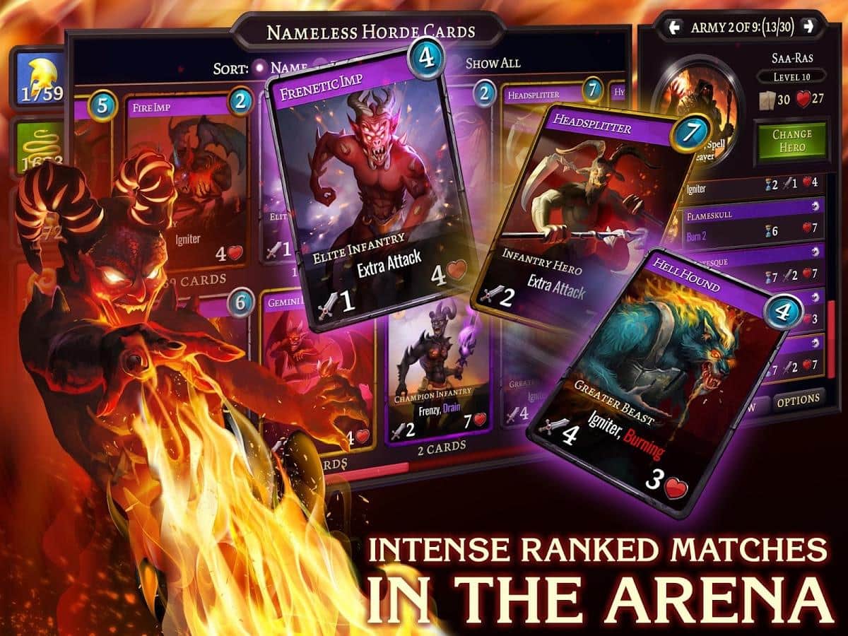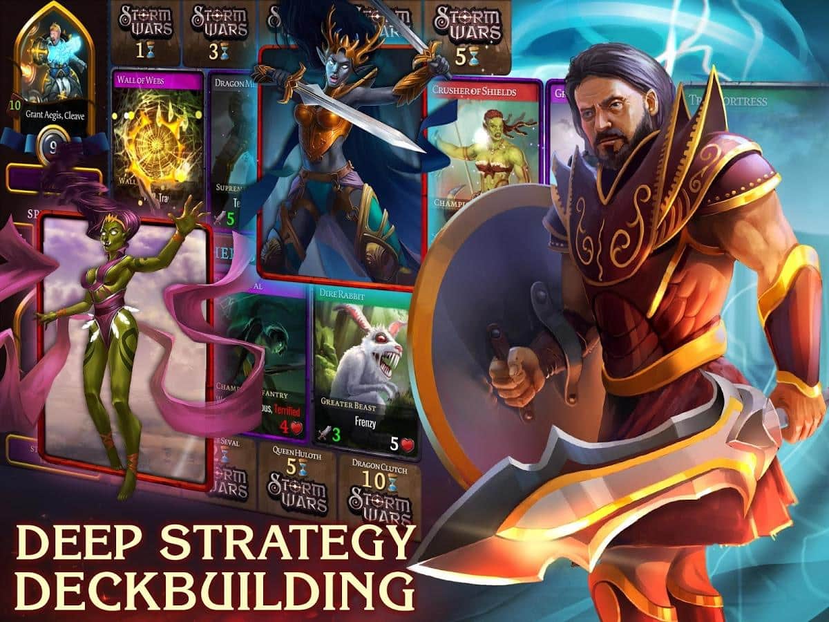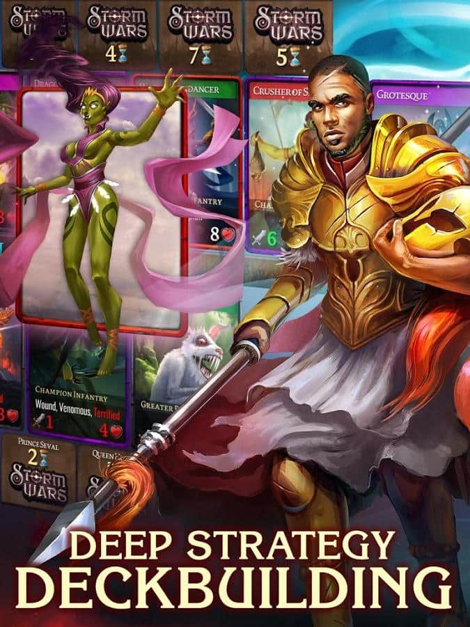 Storm Wars CCG – соберите свою непобедимую коллекцию карт, состоящую из мифических существ, легендарных героев и магов. В этой игре собрано более 150 карт с героями которые поделены на шесть рас, соберите свою непобедимую колоду и вступайте в динамичные битвы с врагами. Путешествуйте по удивительному и неповторимому миру этой игры и сражайтесь с сильными соперниками. Создавайте свою колоду карт так чтобы, каждый герой в ней обладал уникальными умениями и тем самым дополнял других. Бросайте вызов сильнейшим игрокам и сражайтесь с ними на арене в быстрых автоматических боях. Побеждайте своих сильных соперников и усиливайте умения своих воинов.