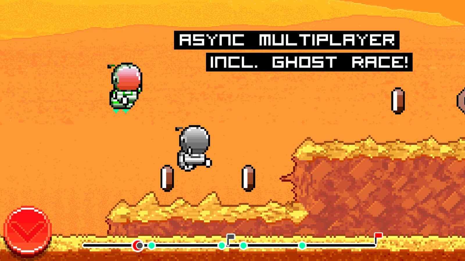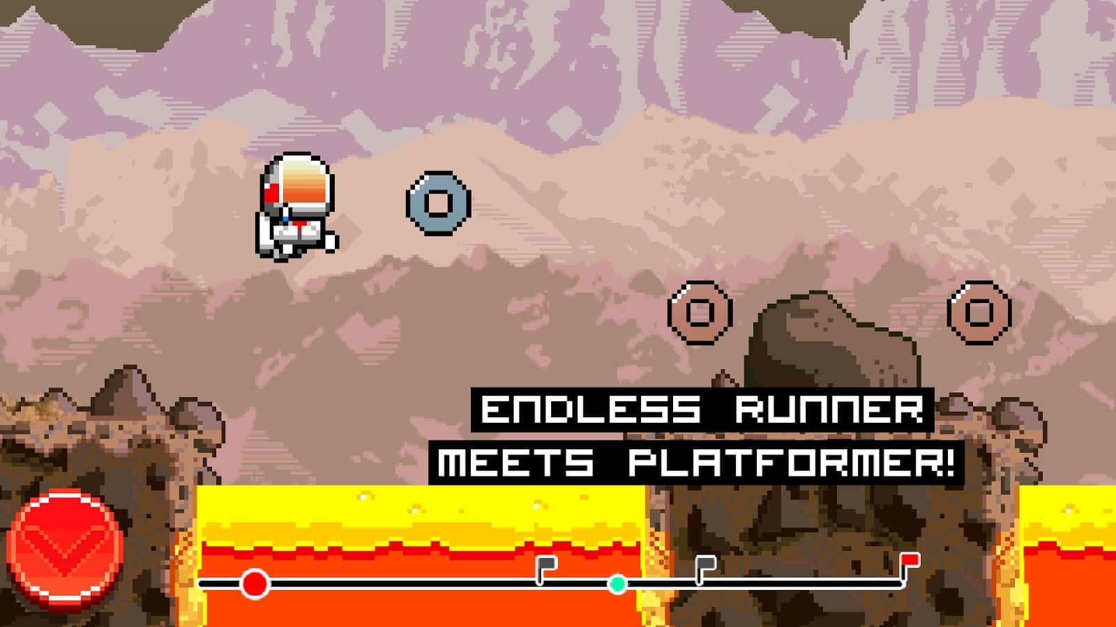 Stranded: A Mars Adventure - двухмерный горизонтальный ранер с элементами платформера, выполненный в пиксельном стиле. Сюжет игры разворачивается вокруг незадачливого астронавта, чей корабль потерпел крушение и на спасательной капсуле наш герой совершил посадку на красной планете. Геймплей большинства подобных игр достаточно примитивен, все что от вас требуется бежать и прыгать. Stranded: A Mars Adventure тоже не лишен данной составляющей, однако игровой процесс выполнен с соблюдением определенного баланса. С каждым новым шагом ваш персонаж набирает скорость, что в свою очередь заметно усложняет геймплей. При столкновении с препятствием скорость падает, что дает вам время для передышки, однако не стоит забывать что действия развиваются на Марсе и для выживания вам необходим запас кислорода, который можно найти только по пути к финишу.