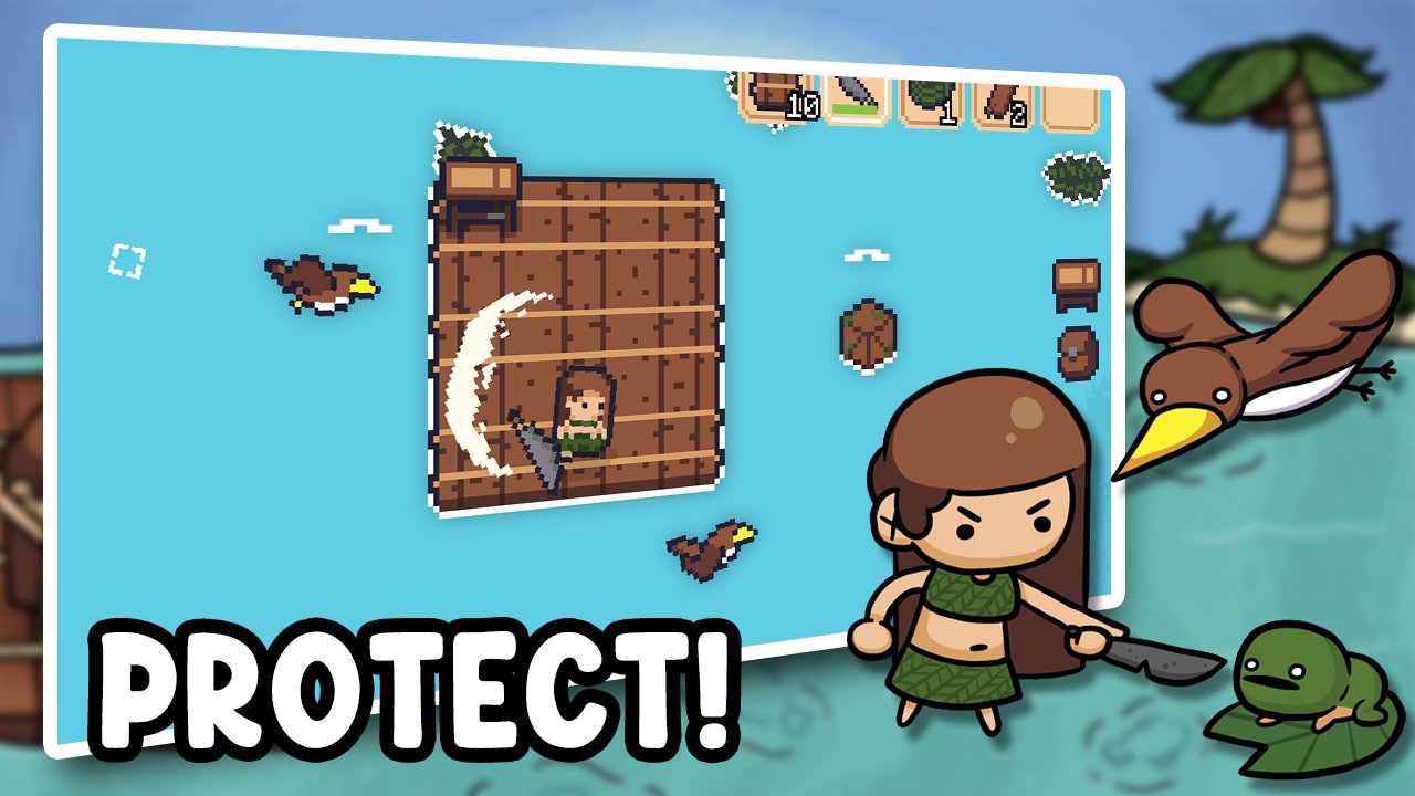 Игра очень похожа на ту Рафт что на ПК версии, но только в пиксельном её виде, довольно интересная, вам стоит попробовать.