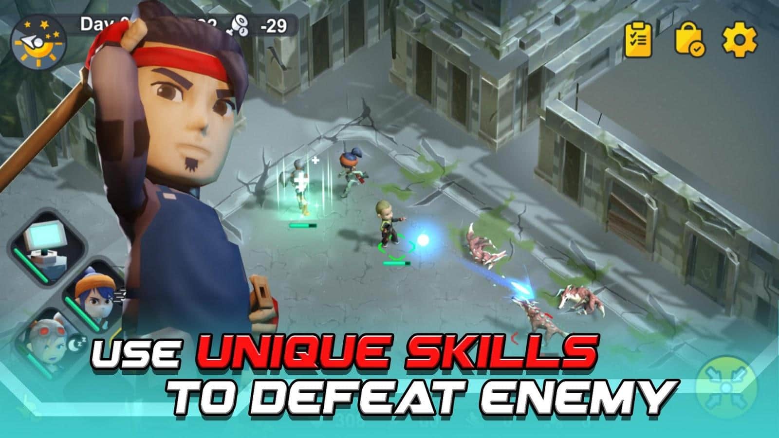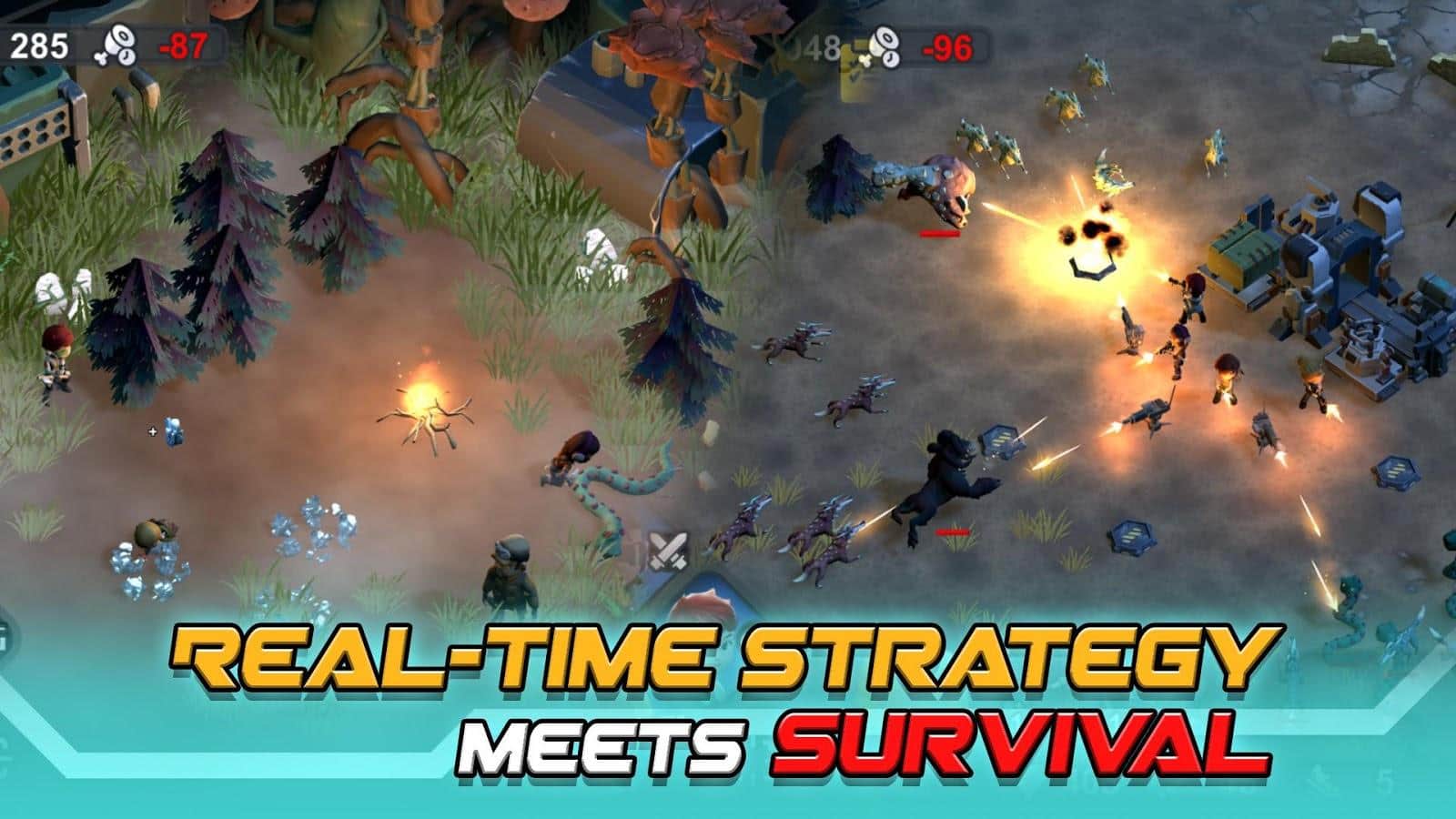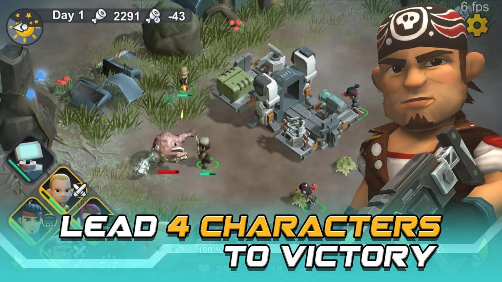 Ты управляешь персонажами, которые будут проходить по всей локации и добывать материалы. Тебе с этим будет помогать передвижная база..