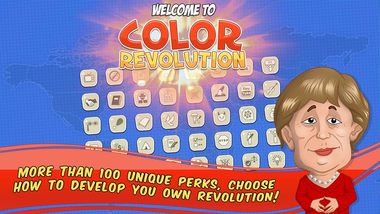 Strategy Color Revolution - В этой игре вам предстоит захватить весь мир но не используя оружие. В самом начале игры вам предложат выбор за какую страну вы будете играть и какую идею вы будете доносить всему миру. Все не так просто, ведь нужно угодить всем странам и не остаться самому с одним бубликом.