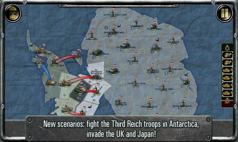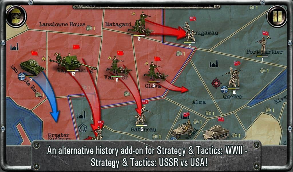 Strategy & Tactics: USSR vs USA - стратегия на андроид, в которой события после второй мировой войны были совершенно другие. СССР сражается с США, бои проходят, на Аляске, в Мексике, Канаде и даже присутствуют миссии по уничтожению остатков армии Гитлера на Южном полюсе.
