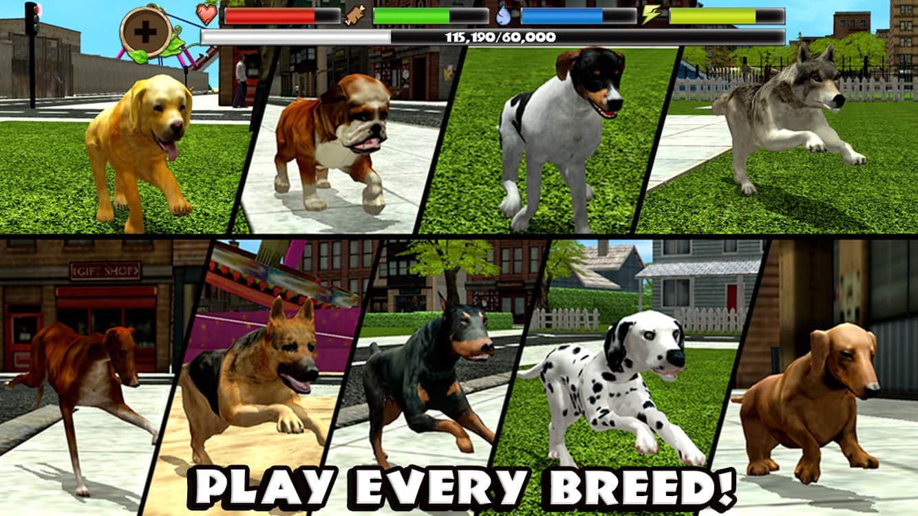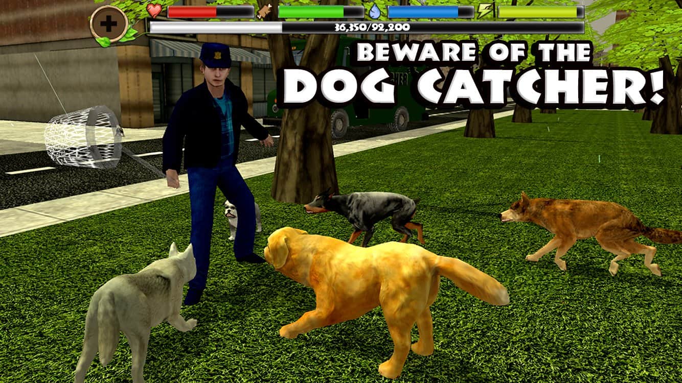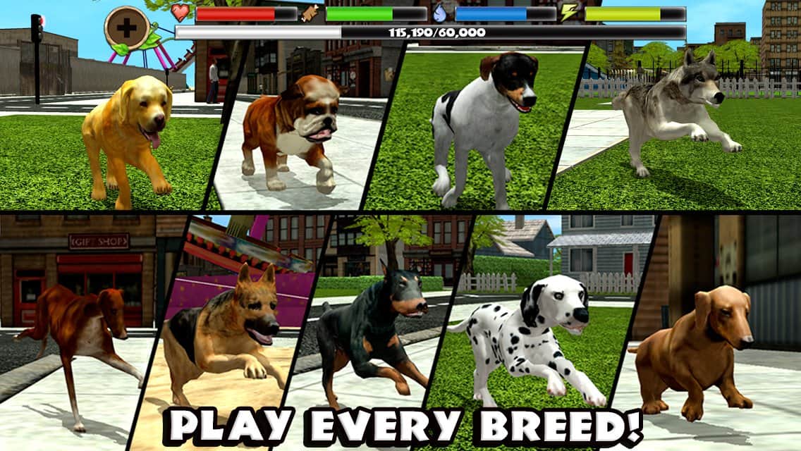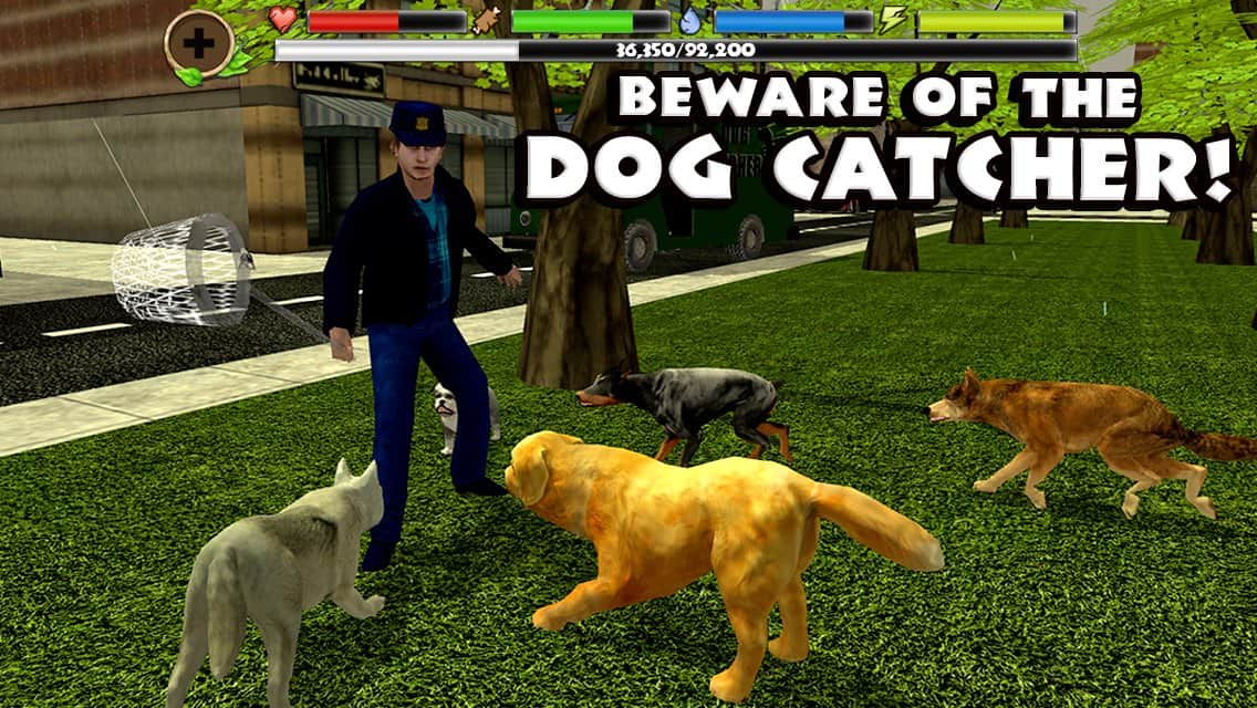 Stray Dog Simulator - В этой игре выберите свою любимую породу и будьте готовы жить, как бродячая собака! Выживите в этом городе, полного опасных собак и злых кошек. Создайте свою собачью стаю, найдите закопанные кости и борись за жизнь против немецких овчарок, хаски и лабрадоров. Поддерживайте своё здоровье, голод, жажду и энергию, если вы хотите выжить в этой среде. Используйте свои мощные челюсти, чтобы защитить свою территорию и бороться со своими врагами. Привлеките в свою стаю сильных собак из 9 пород собак и выберите их окрас. Не пропустите эту интересную игру - тренажер для животных!