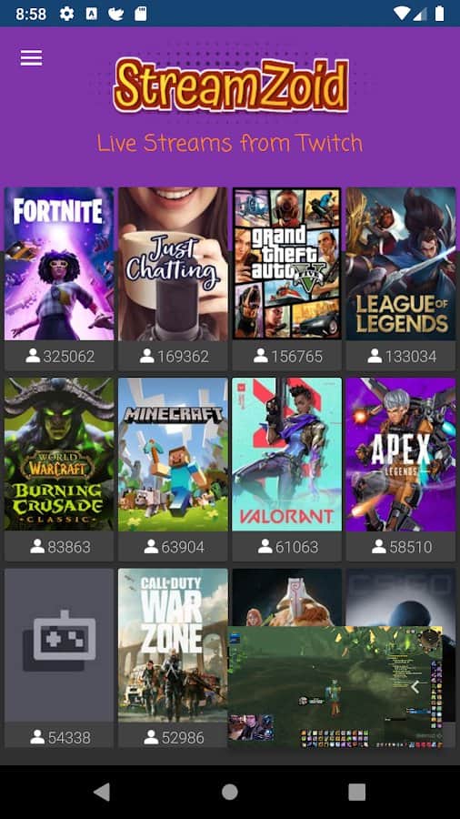 Если вы являетесь поклонником киберспорта или любите смотреть трансляции игр на смартфоне, планшете или Андроид ТВ, то программа StreamZoid - Twitch player создана специально для вас.