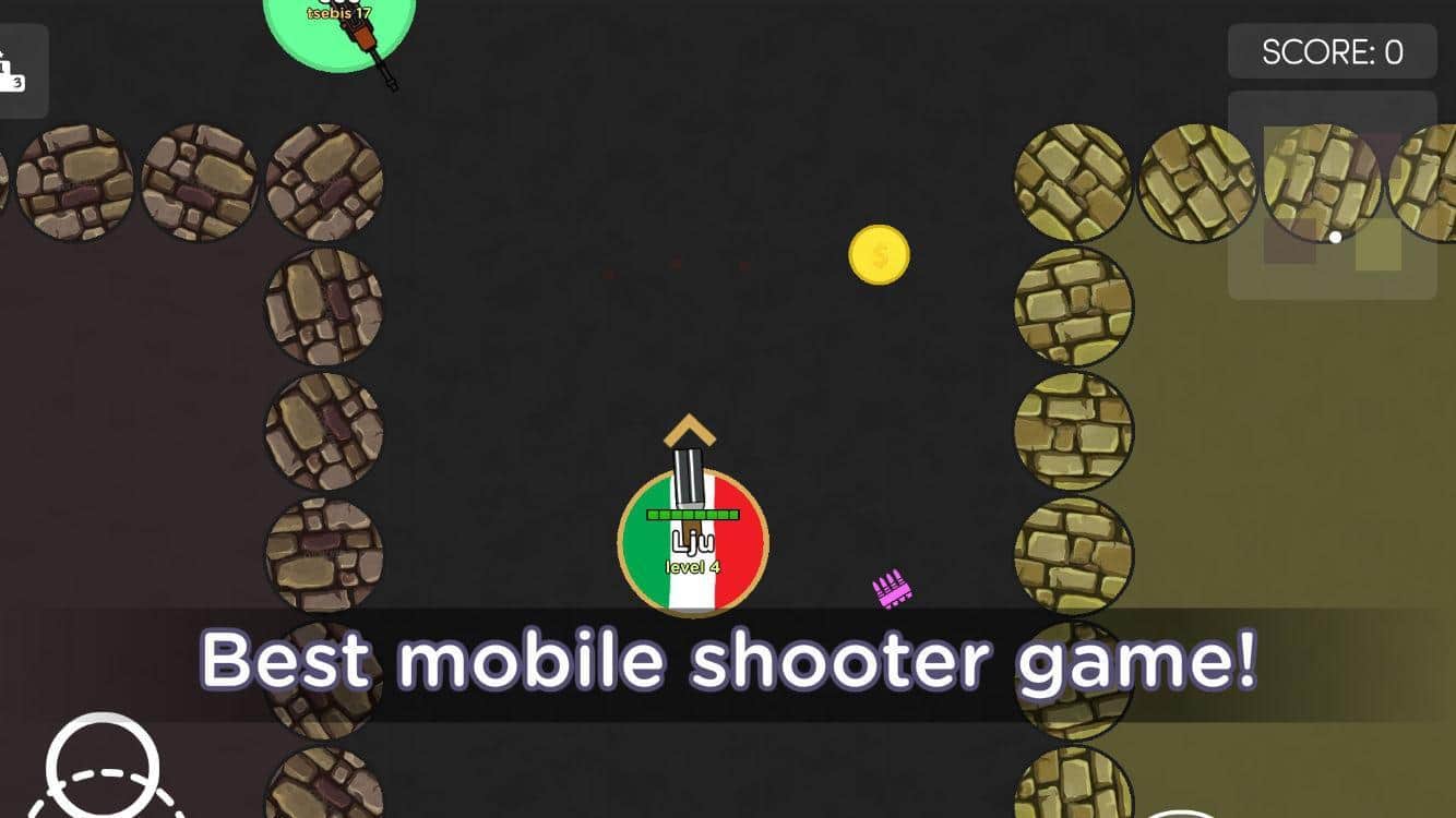 Помните эти кружки которые хавали друг друга? Они ещё в вк есть! Ну вот теперь они эволюционировали! Теперь они вместо каннибализма они решают проблемы стрельбой! В игре есть магазин так же можно в ней зарегатся и видемо только тогда сменишь имя. Есть разные режимы игры. Обычный, командный. Есть мультиплеер. Чеканные монеты можно собрать в бою! После смерти вашего опанента оружие его исчезает! Также оружие разбросано по карте, но пока норм оружие найдёшь какой-нибудь лютый успеет тебя грохнуть(
