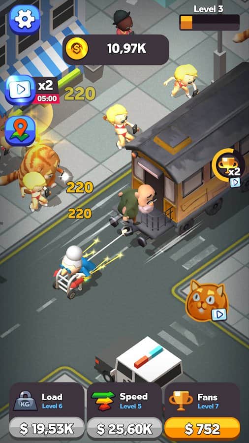 Strong Granny – веселая аркада на андроид, где вы будете управлять самой сильной в мире бабулей. Встречайте самую сильную и выносливую в мире бабулю, которая может победить любого в силовых состязаниях. Наша бабуля занимается тягой различных предметов это может быть автомобиль, грузовик, кошки, паровоз и даже огромная акула. Для нашей бабули все не почем, она является самым сильным человеком на планете. Пока что наша бабушка ели передвигает ногами, но вскоре она может свернуть горы. Помогите бабуле накопить на суперускорение и ходунки ей больше не нужны. Рекорды бабули будут привлекать толпы фанатов, которые будут бросать монеты. Зарабатывайте монеты и получайте больше ускорения.