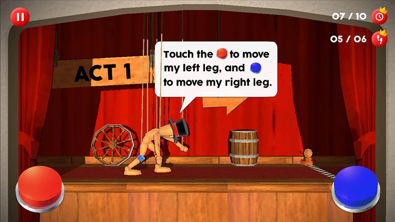 Strung Along - игра, в которой вы станете кукловодом и попробуете свои навыки в деле. Управляйте деревянной куклой, которой необходимо преодолеть большое множество различных задач. Шаг за шагом преодолевайте все препятствия, совершайте прыжки и собирайте нужные предметы. В этой игре вас ждет отличная физика и легкое управление непослушной куклы с помощью двух разноцветных кнопок на экране, которые отвечают за ноги куклы. Выберите себе понравившийся режим, и попробуйте свои силы в бесконечном.