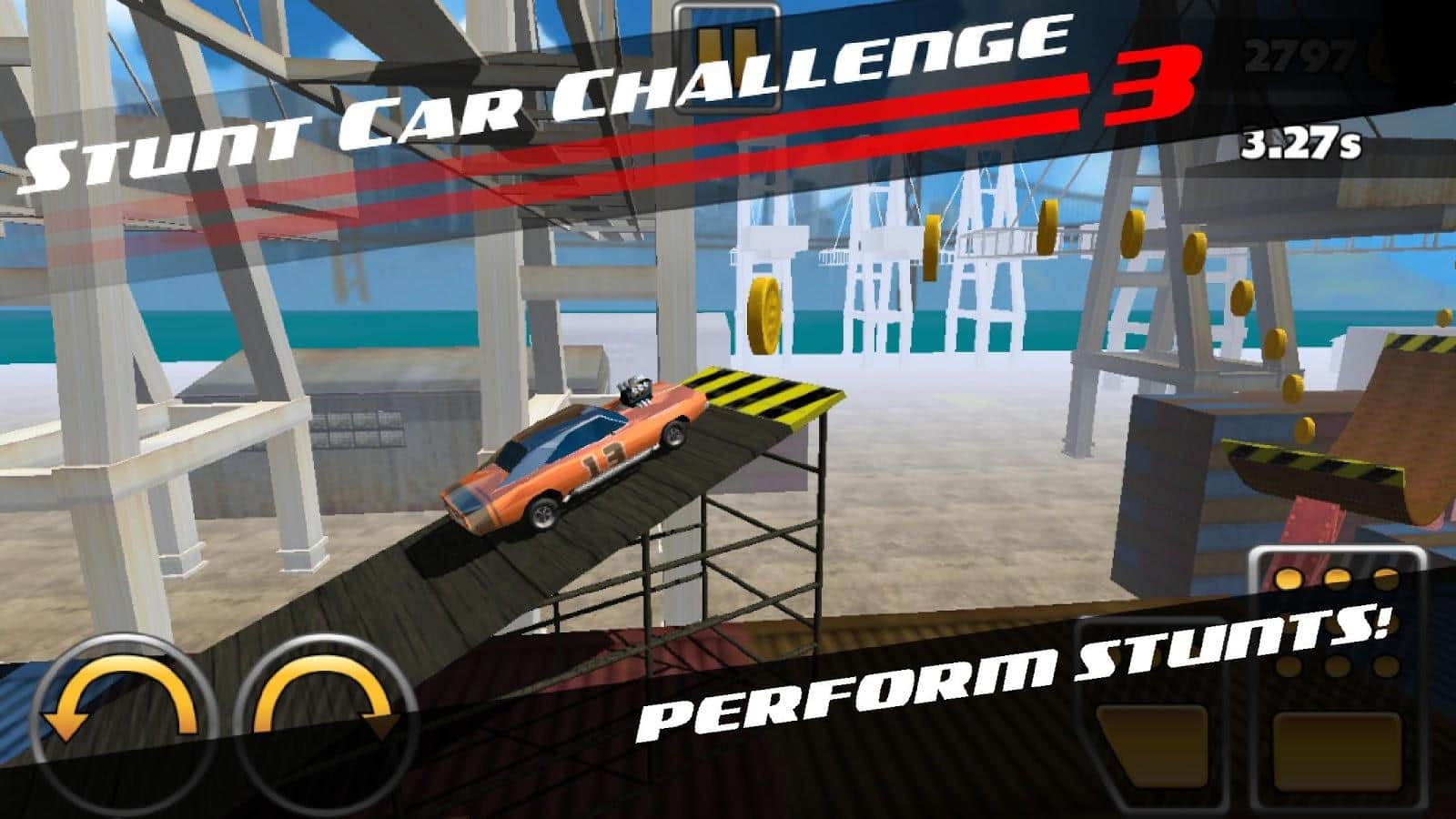 Stunt Car Challenge 3 - Отправляйтесь колесить пустыню, вместе с новой частью Stunt Car Challenge. Эта увлекательная игра, вобрала в себя всю простоту управления, но при этом остается весьма интересной, и сложной. Ваша задача доехать до финиша, живым! Всего то, нужно гнать не сбавляя скорости, и попытаться не убить себя по дороге. Задача на первый взгляд весьма простая, но тут мы понимаем, что за вами ещё идет погоня. С каждым новым уровнем, препятствия будут становится все сложнее, но все интереснее. В целом игра очень даже не плохая, и имеет довольно приятную графику.