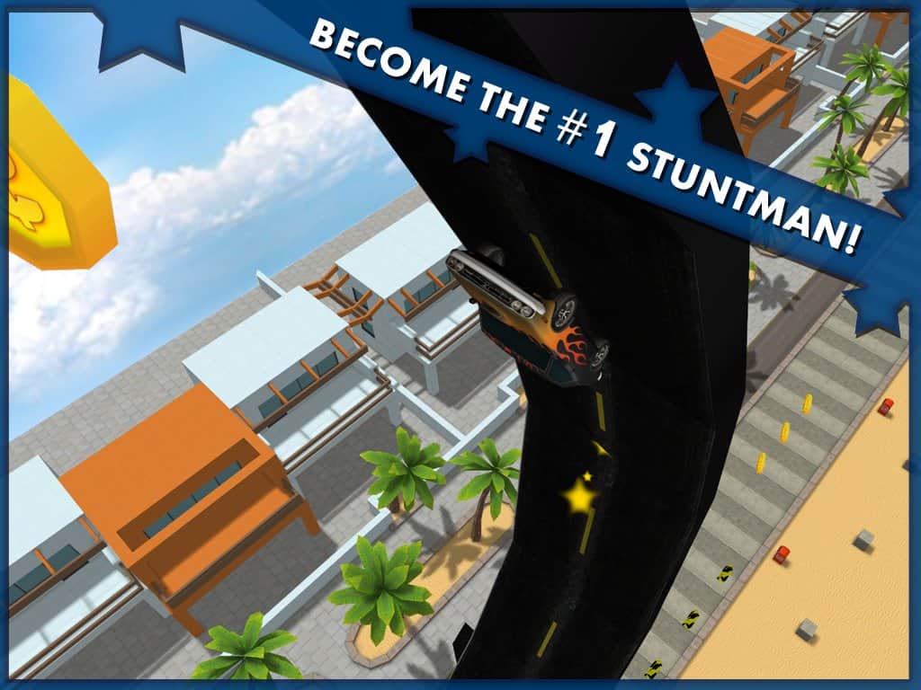 STUNTMAN STEVE - STUNT RACING - захватывающая игра на android, в которой каскадер Стив проделывает сумасшедшие трюки. Он попал в аварию и теперь боится проделывать смертельные трюки, вам необходимо помочь ему преодолеть свой страх. Гоняйте на полной скорости и совершайте головокружительные трюки, гоняя по кругу на огромной высоте, а также выполняйте задуманные уловки, чтобы порадовать толпу. Остерегайтесь ловушек расставленных повсюду, собирайте монеты и покупайте новые реалистичные автомобили.