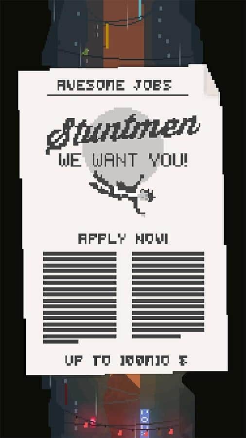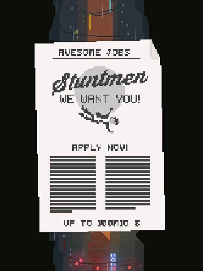 Stuntman Stuart - новый проект малоизвестной студии Zeichen, выпустившей несколько игр с довольно оригинальным подходом к исполнению, а именно главный акцент в серии аркад был сделан на физику, не на графику и даже не на геймплей как таковой, а именно на физику. И Stuntman Stuart логическое продолжение данного направления. И так, геймплей данной игры это что-то среднее между хардкорной аркадой и ранером. Вам предстоит выступить в роли каскадера, совершающего затяжное падение с крыши небоскреба, но все еще осложняется всевозможными препятствиями попадающимися на вашем пути. Ваша задача управляя персонажем в состоянии свободного падения постараться пролететь как можно дольше и набрать максимальное количество очков. Как уже говорилось игра создана с акцентом на физику и не смотря на пиксельное графическое решение, для того чтобы достичь впечатляющих результатов предстоит немало постараться.