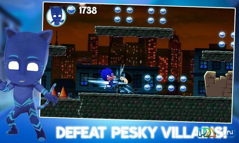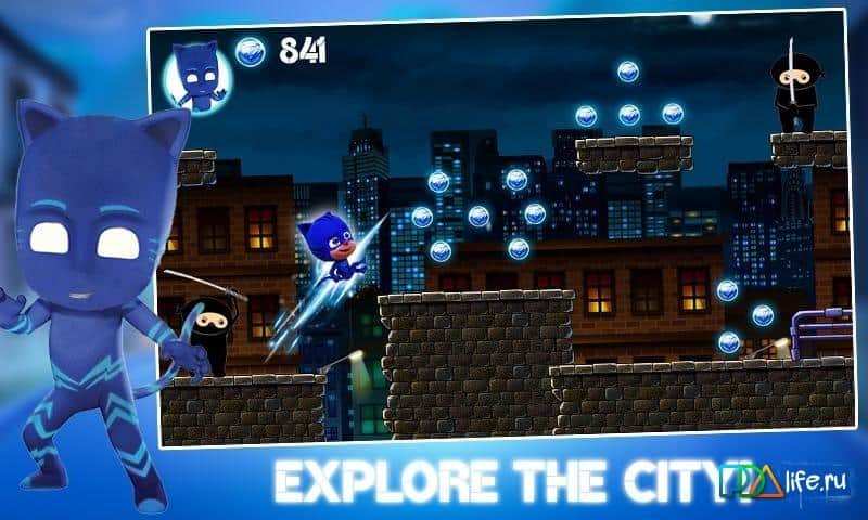 Преступники и силы зла пытаются полностью покорить ночной город в Subway Ninja Mask Game, но настоящий герой, знающий техники ниндзя, готов спасать людей. И этим героем становится обычный кот, превращающийся в супергероя после того, как надевает синюю маску. Он не может найти достойной команды, способной выдержать его уровень, поэтому работает только один. Стань тем профессионалом, который сможет помочь супергерою бороться с преступниками по ночам на крышах домов. Не забывай о собственной награде, собирай и копи монеты!