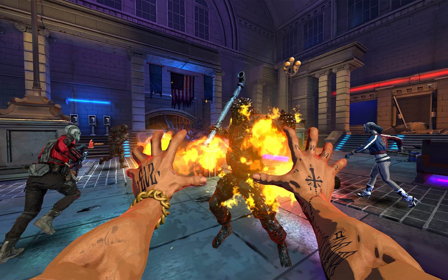 Управляйте специальными способностями Харли, Дэдшота и Дьябло.