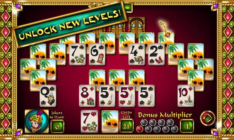 Sultan Of Solitaire Card Games - игра, сочетающая в себе два вида пасьянса: TriPeaks и Pyramid Solitaire. Хорошая игра, красиво нарисованная колода кар, а так-же возможность построения красивых дворцов для султана, заставит вас играть снова и снова. Расчистите всю колоду и разложите пасьянс.
