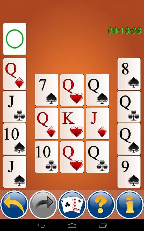 Карточная игра Пасьянс Султан - Сделайте небольшую передышку, и сыграйте в этот замечательный пасьянс на андроид. Это необычный карточный пасьянс, который является не очень сложным, и не требует большой загруженности мозга. Игра сделана в аркадном стиле, поэтому является простым тайм киллером. Но тем не менее, вам придется выработать свою стратегия прохождения игры.