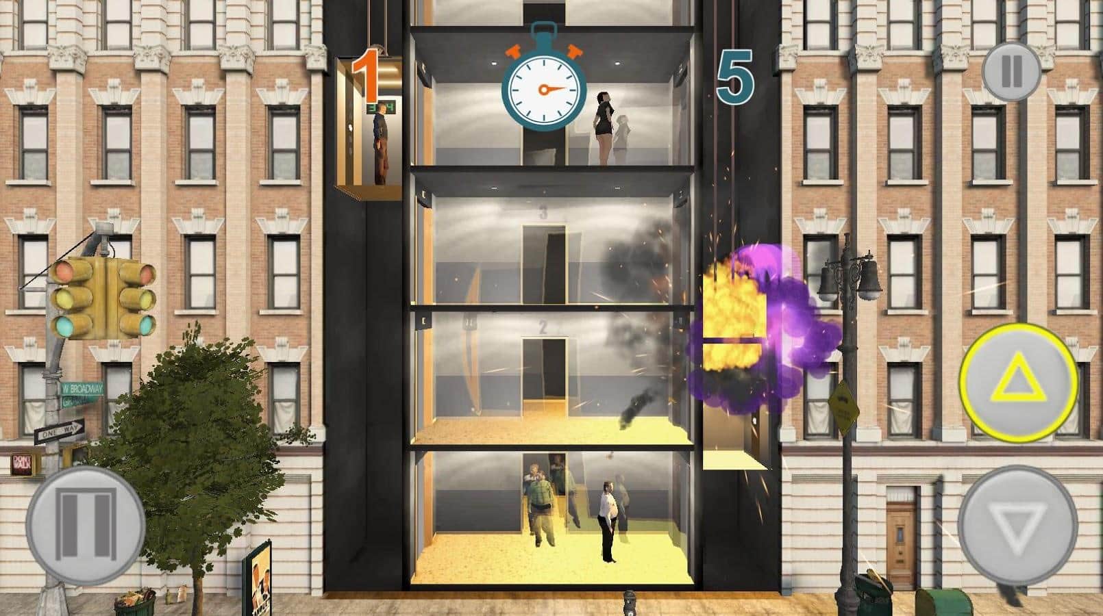 Сумасшедший лифтёр 3d: Городская битва – интересная игра на андроид, где вы будете вступать в схватку с противником управляя лифтом. В этой игре вы возьмете под свой контроль управление лифтом и будете проявлять смекалку и находчивость опережая соперника. Опускайте и поднимайте лифт перевозя людей на нужный этаж. Выполняйте многочисленные миссии и задания игры и получайте награды. В этой игре вы получите возможность играть вдвоем с другом на одном устройстве. Игра порадует вас отличной фотореалистичной графикой, настоящими записанными из лифта звуками и правдоподобной анимацией. Следите за тем чтобы в лифте не было перегруза иначе может произойти непредсказуемое.
