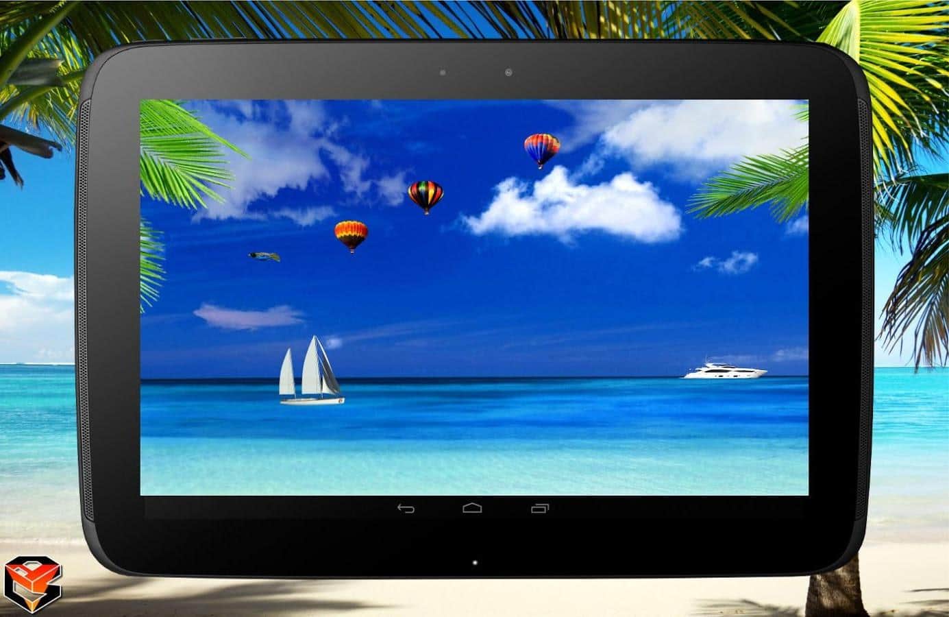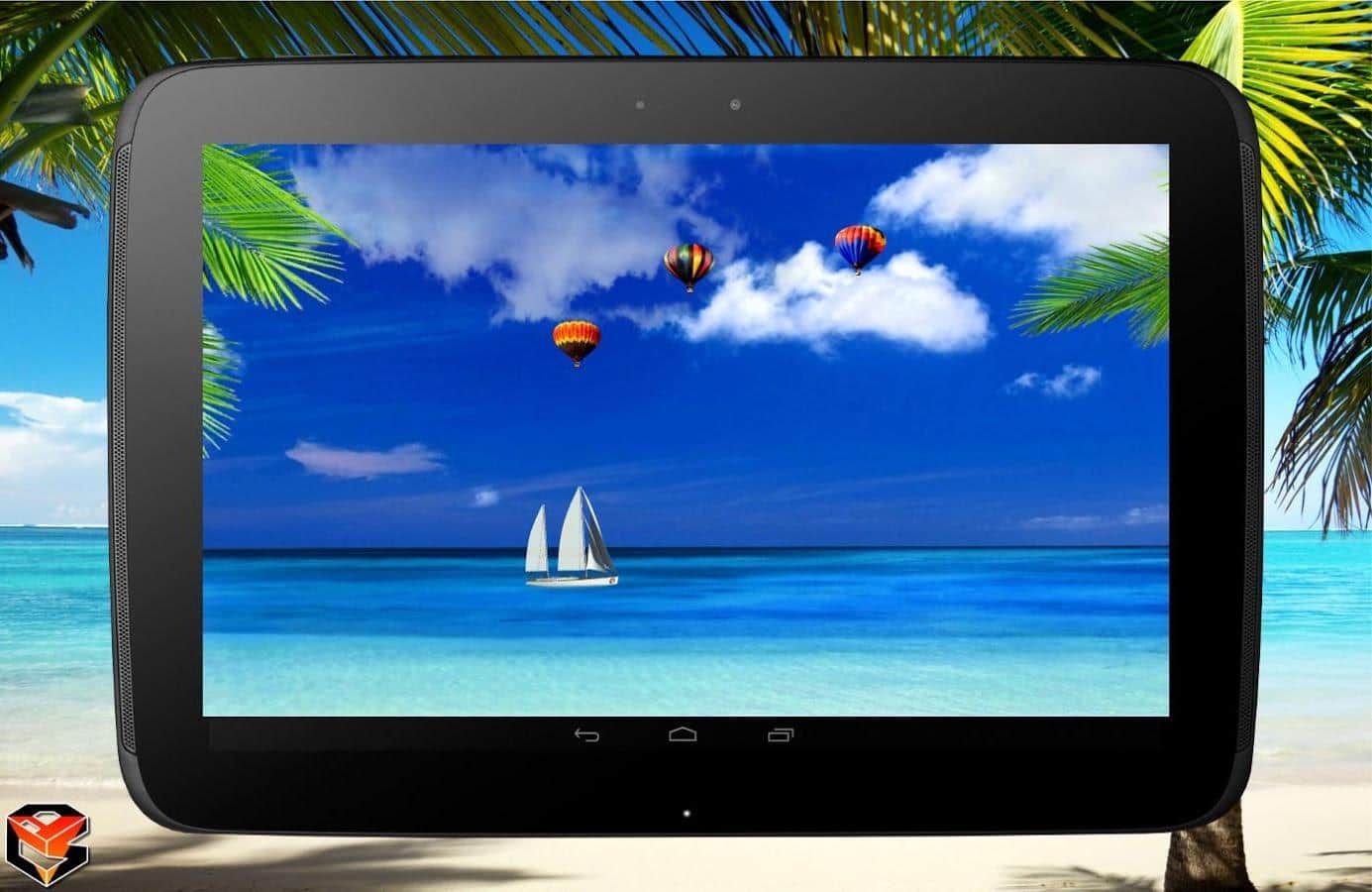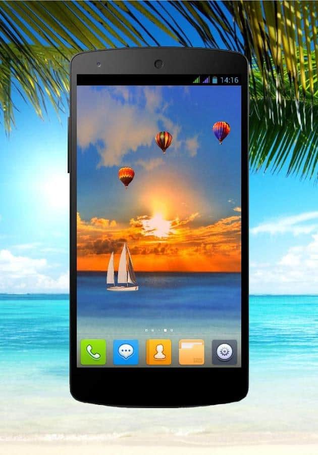 Summer Live Wallpaper – отличные живые обои на андроид, которые подарят вам кусочек лета. Установите эти обои в свой телефон или планшет для того чтобы наблюдать белоснежный безлюдный пляж с лазурной водой и качающимися пальмами. Наслаждайтесь превосходным восходом солнца и невероятным закатом под шелест волн. Наблюдайте как по экрану вашего девайса плавают яхты, летают воздушные шары и чайки. Обои порадуют своих обладателем полностью анимированной картинкой, которая перенесет в лето, движущимся 3D фоном и понятным меню. Перенеситесь из серых будней на лазурный пляж и получайте море удовольствия от созерцания картинки.