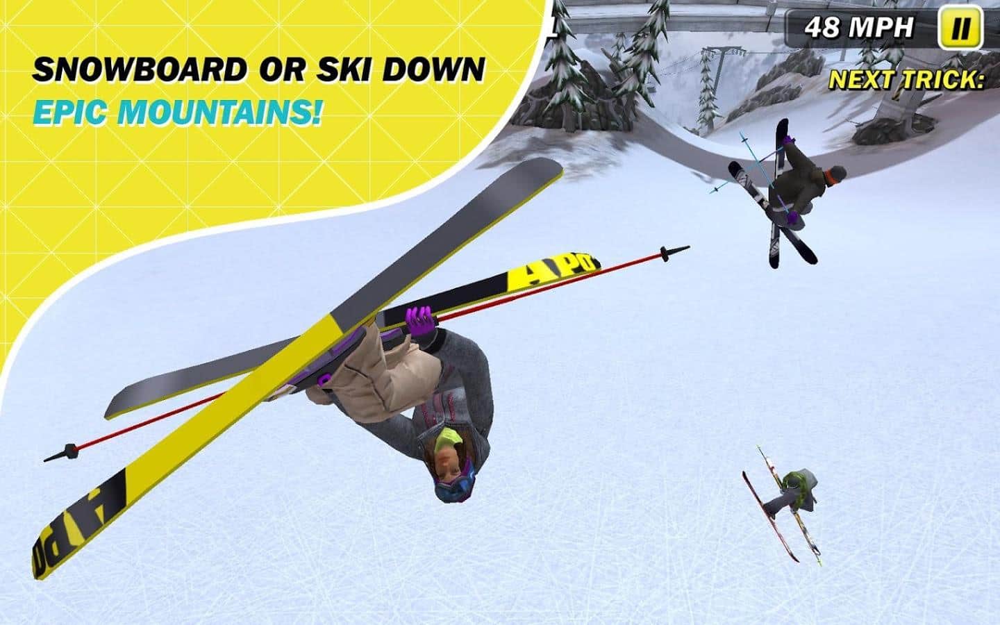 SummitX 2: Skiing/Snowboarding - Продолжение хорошей трехмерной игры на андроид про горные лыжи и сноуборды. Игра уже получила признание во всем мире, благодаря хорошей реализации этих видов спорта. Вас ждут горные заезды с прыжками и трюками в великолепной трехмерной графике. А по пути надо собирать бонусные плитки. Вы можете как просто устраивать заезды, так и скооперировать команду и бороться против других групп.