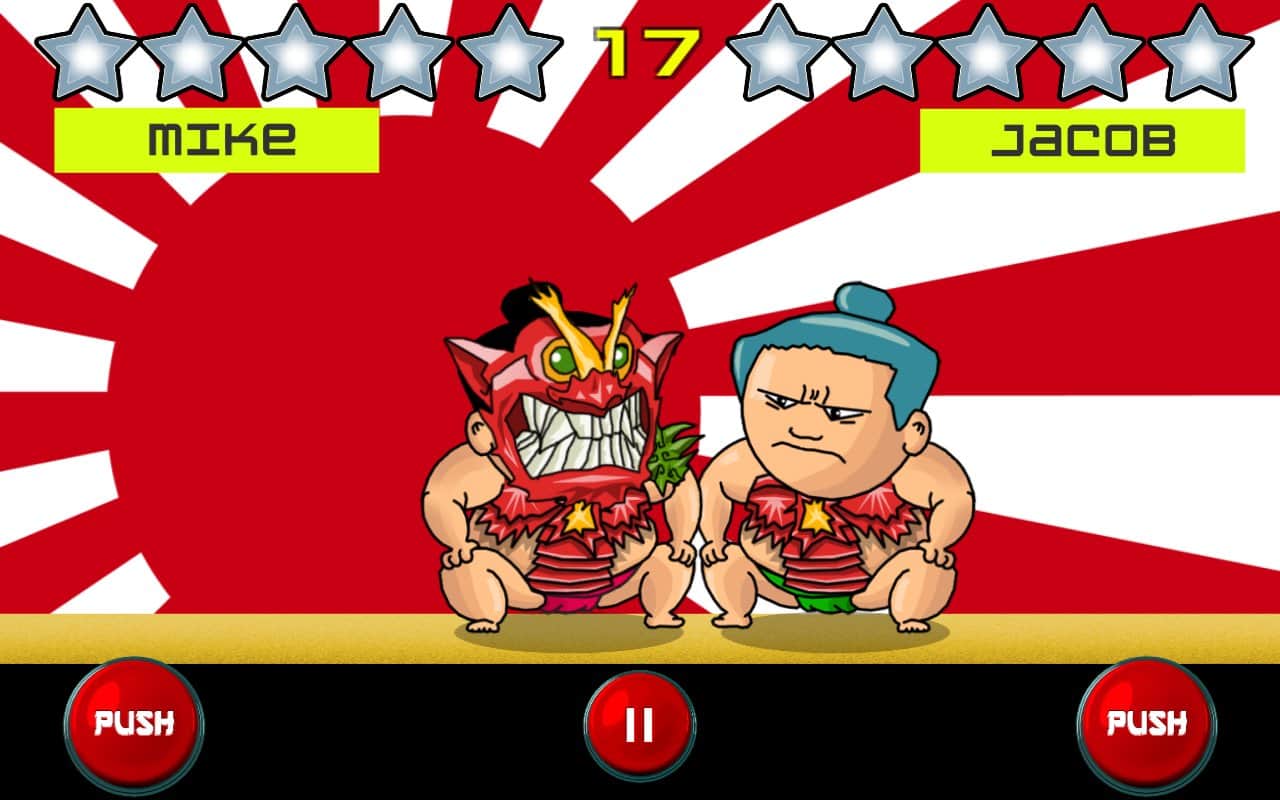 SUMO KING – игра в которой вам предстоит управлять бойцом сумо и добиваться победы любым путем. Играйте со своими друзьями на одном устройстве нажимая на кнопку для того чтобы ваш боец вытолкнул соперника с поля. Чем быстрее вы будете жать на красную кнопку, тем быстрее будет двигаться ваш сумоист. Докажите всем что вы самый сильный играя с друзьями, случайными игроками и против Al, побеждая соперников и улучшая своего героя примеряя на него различные устрашающие маски. Приготовьтесь к безоговорочной победе и покажите на что вы способны ради первого места.