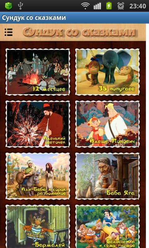 Предлагаем вашему вниманию приложение для андроид "Сундук со сказками" - это приложение-сборник из 100 лучших детских сказок для андроид, которые Вам рассказывали в детстве родители, бабушки или дедушки. В список вошли как русские народные, так и восточные, ставшие классикой произведения братьев Грим и Шарля Перро. Сказки вскоре станут настоящим кладезем, из которого Вы и Ваши малыши неустанно будете черпать мудрость и новые познания мира!