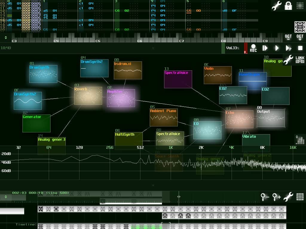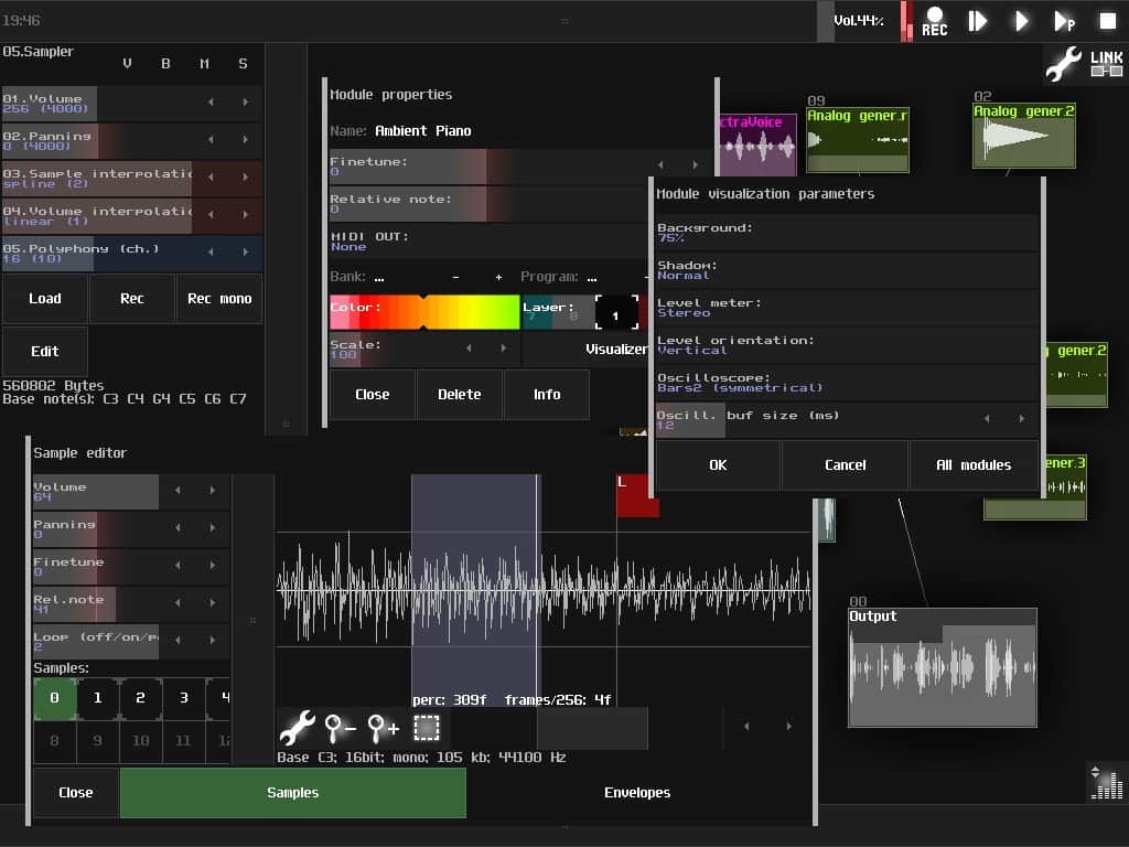 SunVox – крутой, полноценный музыкальный редактор для андроид устройств. Всё тыкается, редактируется, выделяется, вставляется и соединяется. Несмотря на кучу напиханного функционала, на экране устройства все элементы расположены очень удобно — трудностей интерфейс не вызывает, всё понятно даже для видящего программу в первый раз. Создавайте собственные музыкальные треки без труда с помощью отличной программы SunVox.