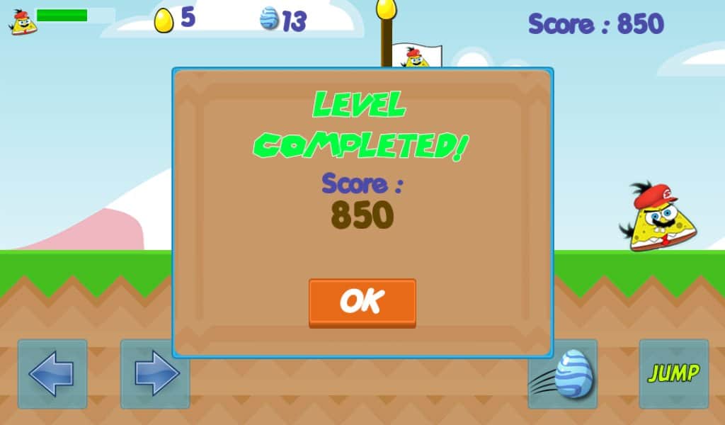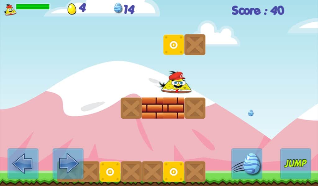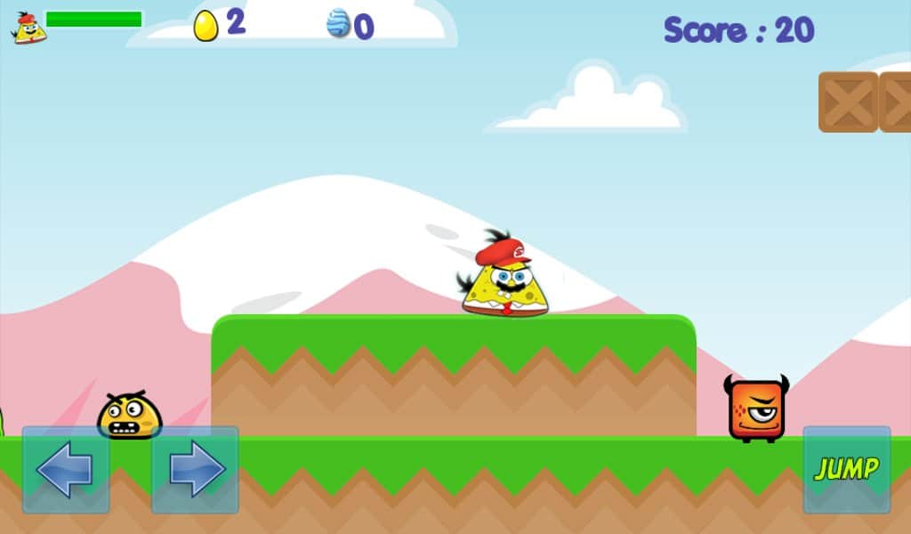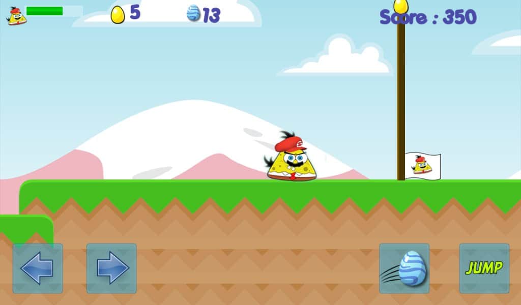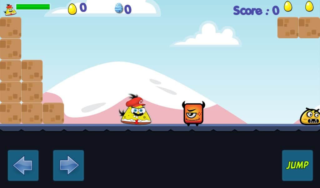 Super Angry Sponge – увлекательный платформер на андроид, отдаленно напоминающий популярную игру Марио. В этой игре вы должны помочь главному герою игры, пройти все опасные уровни и достичь финиша, при этом собрать все яйца на уровне. Прыгайте по платформам и собирайте золотые и пасхальные яйца, которые помогут вам сражаться с врагами. Игра порадует игроков простым и понятным управлением с помощью специальных кнопок находящихся на экране вашего девайса. Играйте в эту игру и соревнуйтесь со своими друзьями, набирая максимальное количество очков. Уничтожайте врагов, прыгая на них с платформ или стреляйте в них яйцами.