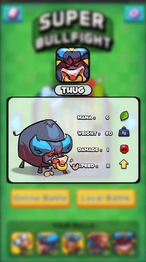 Super Bull Fight – локальная многопользовательская игра на андроид, где вашей главной задачей будет уничтожить ферму противника. Эта игра создана для двух игроков в которую вы сможете играть с друзьями на одном устройстве или бросить вызов игрокам со всего мира. Выбирайте себе быков из предложенных в игре и настраивайте их по своему усмотрению. Расставляйте быков на поле боя и наблюдайте за тем как они сеют хаос и разрушение. Сражайтесь быками и яростно уничтожают ферму противна.