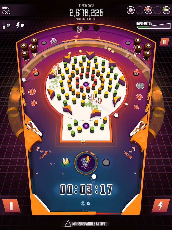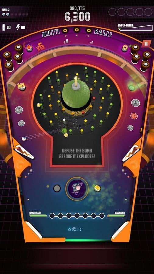 Super Hyper Ball 2 – увлекательная игра на андроид, смесь арканоида и пинбола. В этой игре вы будете запускать шарик в полет и отбивать его при помощи специальной подвижной платформы. Вашей главной задачей будет удержать шарик в полете и при этом разрушить многочисленные блоки, победить злых боссов и собрать все усиления. Вовремя касайтесь экрана своего телефона или планшета и отбивайте летящий к вам шарик в нужном направлении. Играйте в эту игру и проверьте в действии три режима игры. Проходите все 100 уровней и установите свой рекорд в этой игре. Наслаждайтесь захватывающим игровым процессом и открывайте новые шарики.