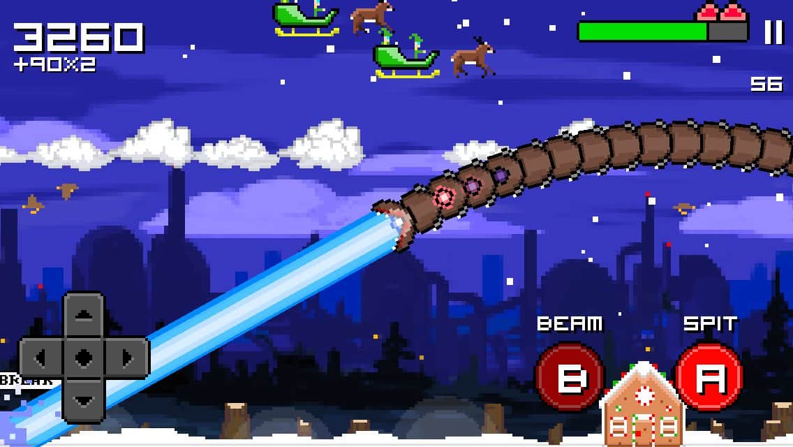 Super Mega Worm Vs Santa Saga - игра на аndroid, в которой вы будете участвовать в эпической битве мега змейки и Санты. Эта игра состоит из двух глав, каждая из которых имеет свои уровни. Змейка вернулась, и будет прыгать, ползать и сметать все на своем пути с новой силой. Спасите землю от ее разрушительных действий.