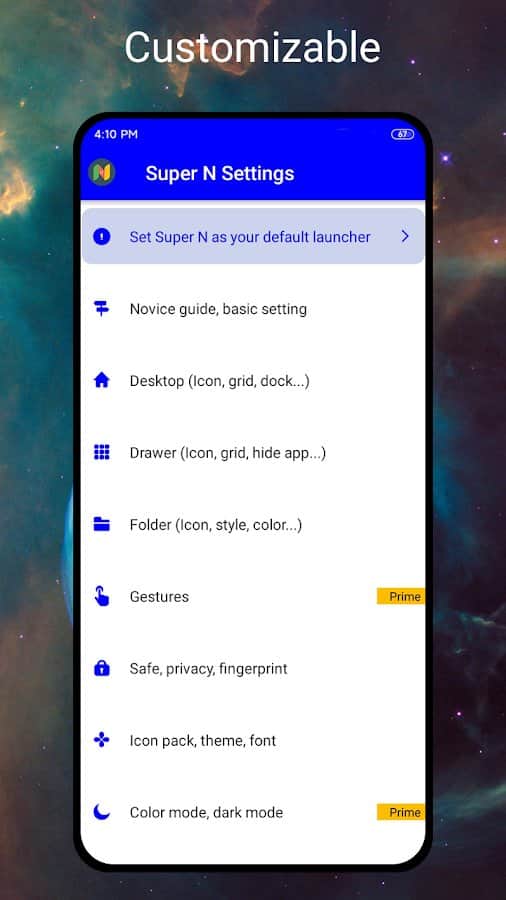 Super N Launcher - Получите совершенно новый, наиболее современный вид интерфейса на вашем телефоне! Используйте все доступные функции: удобная поисковая система, поддержка переключения жестами, скрытие ненужных приложений, огромная коллекция обоев на любой выбор, удобные виджеты, различные стили приложений и сортировка, группировка в специальные папки и множество других способностей. Сделайте собственное пребывание в телефоне намного удобнее, легче, полезнее. Наслаждайтесь процессом и узнавайте о новых функциях для использования!