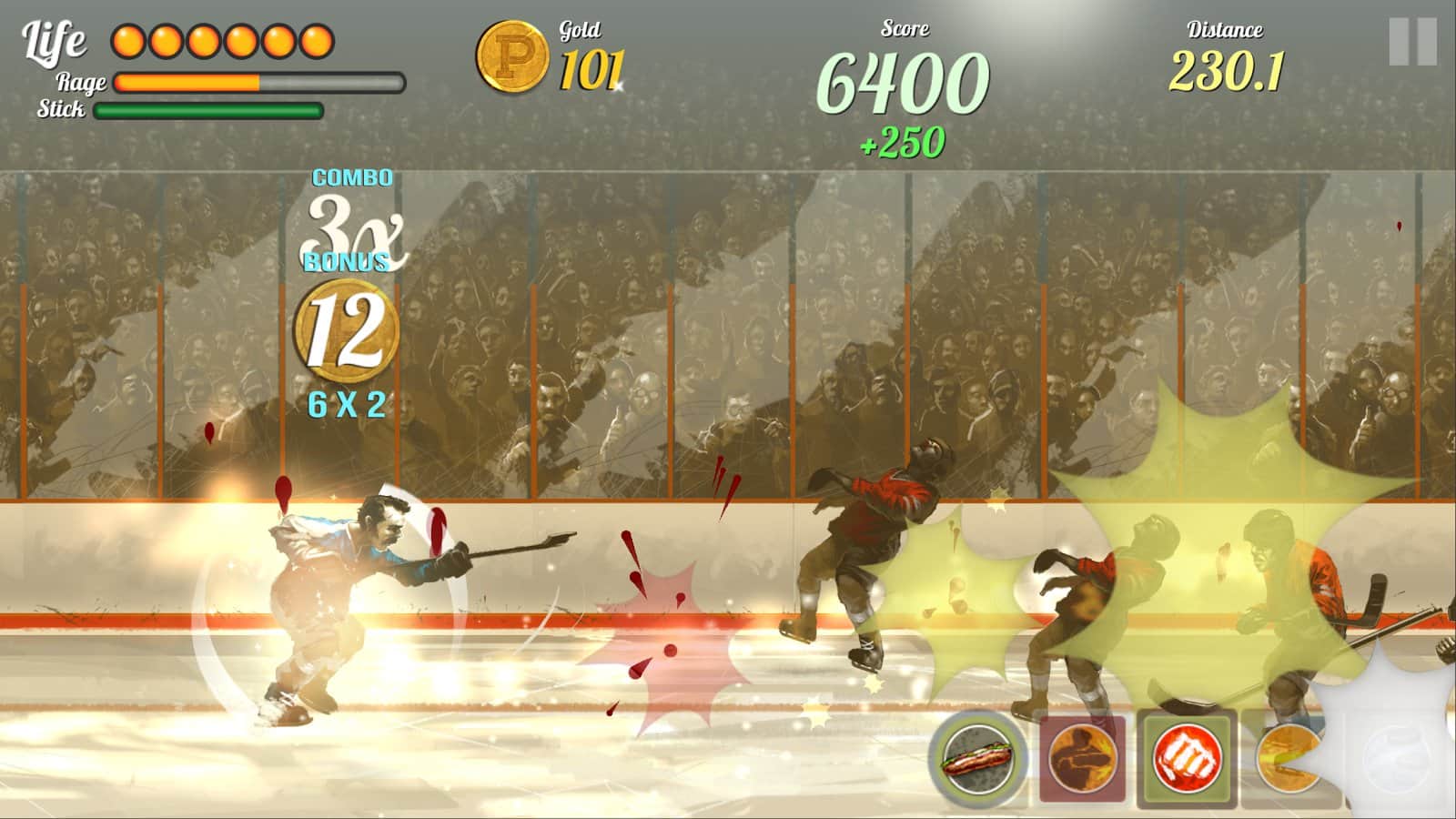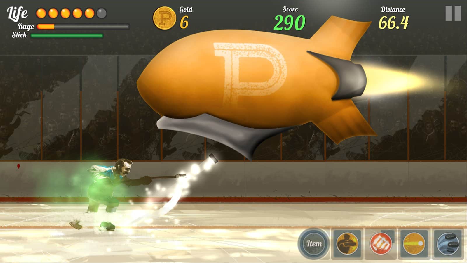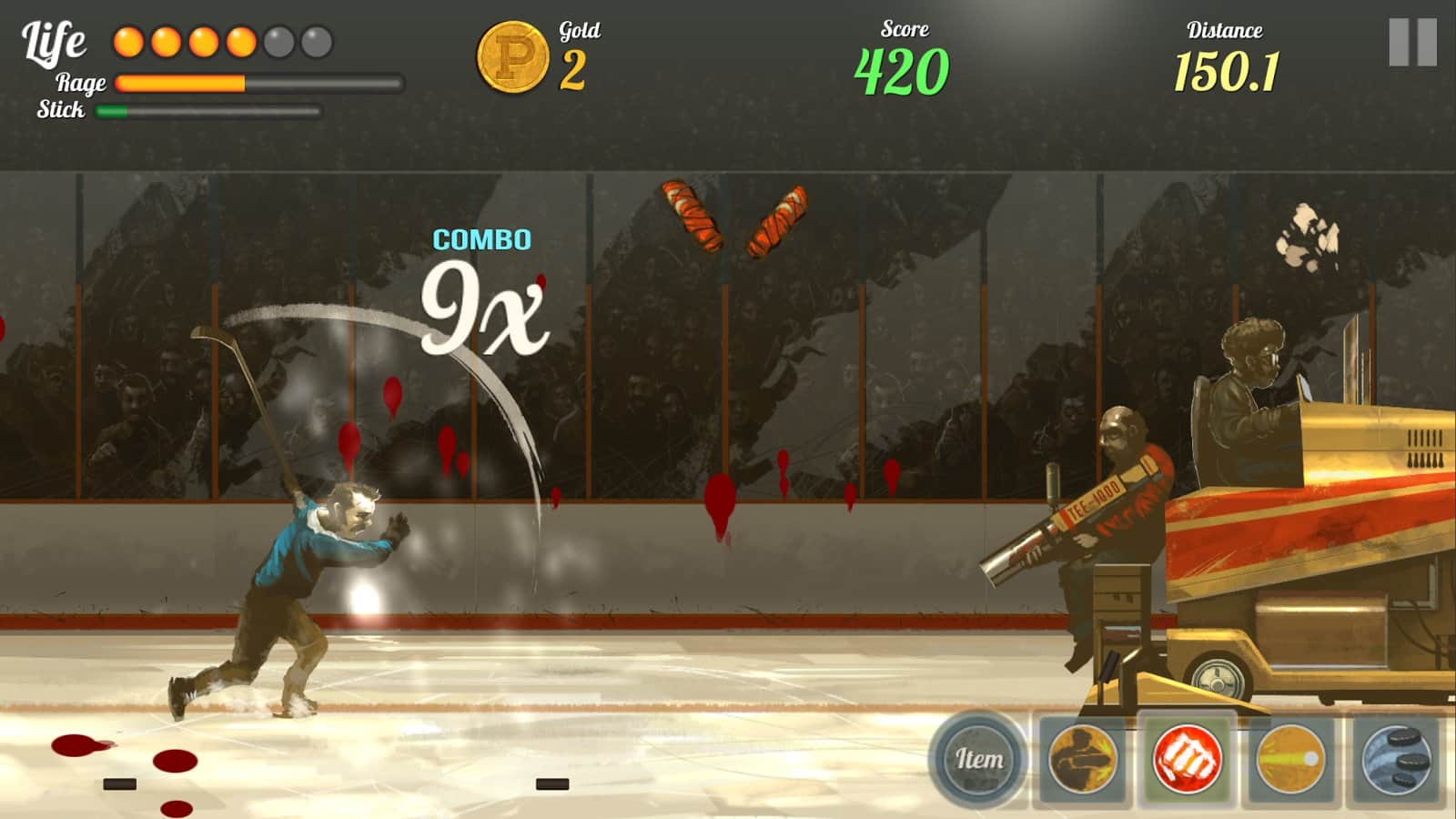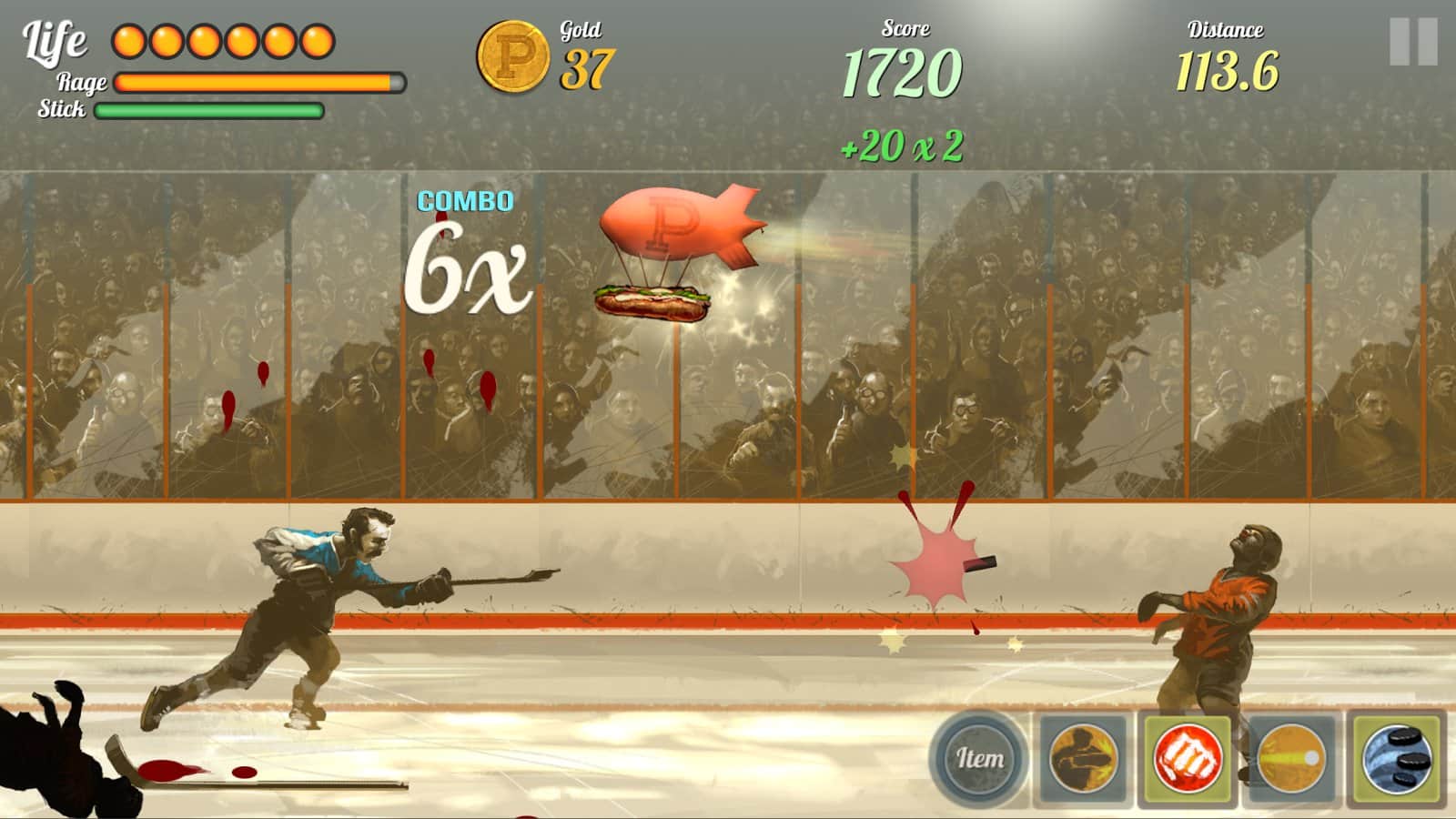 Super Puck Jam – раннер на андроид, с быстро развивающимися действиями и графикой в стиле 70-х годов. В этой игре вы будете управлять отважным хоккеистом, который в одиночку решил бросить вызов целой команде игроков и зло настроенным болельщикам. Управляйте своим хоккеистом с помощью одного пальца и обходите все препятствия на своем пути в виде летящих бутылок, гамбургеров и других хоккеистов. Двигайтесь точно к намеченной цели и закаляйте свой характер, противостоя команде и мощным боссам. Зарабатывайте больше золота и открывайте для своего героя дополнительные способности и специальные атаки.