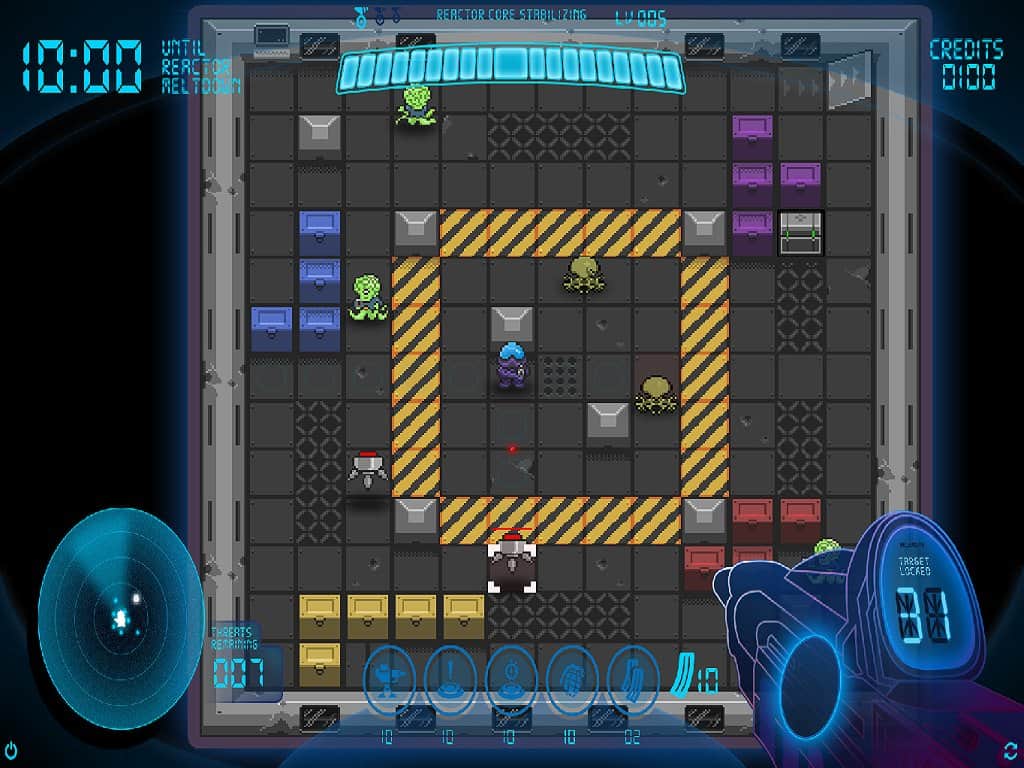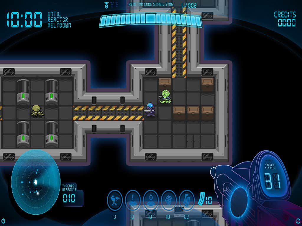 Super Space Meltdown - космическая экшен аркада выполненная в лучших традициях старой школы. События игры разворачиваются в самом центре галактики, вам же отводится роль космического рейнджера отправленного на межгалактическую станцию с которой была потеряна связь. Вам же необходимо выяснить причины разрыва связи и узнать что же все таки произошло. Прибыв на станцию вы понимаете что объект был атакован инопланетными захватчиками, весь экипаж станции пропал. Вам ничего не остается как взять в руки плазменную винтовку и отправиться с боем прорываться к спасательной капсуле. Однако инопланетне не единственная ваша проблема, на станции сработал механизм самоуничтожения и таймер уже запущен, так что если вы хотите выбраться живым вам придется поторопиться. Игровая механика Super Space Meltdown сочетеает в себе элементы экшен аркады и стелс шутера, а вот какому стилю отдать предпочтение решать уже вам.