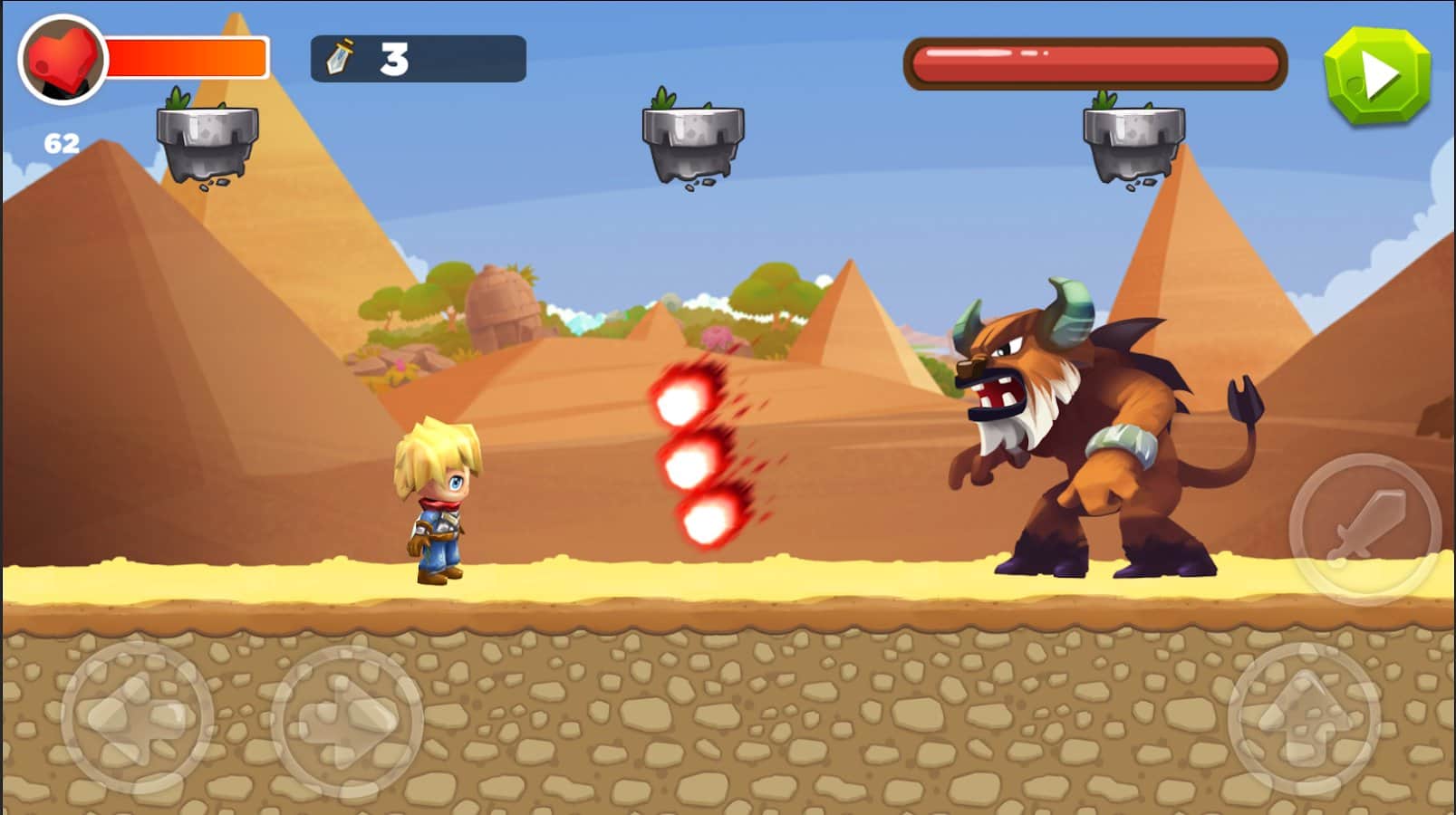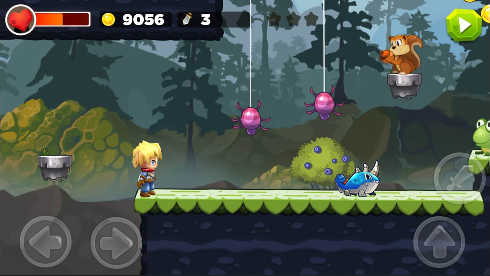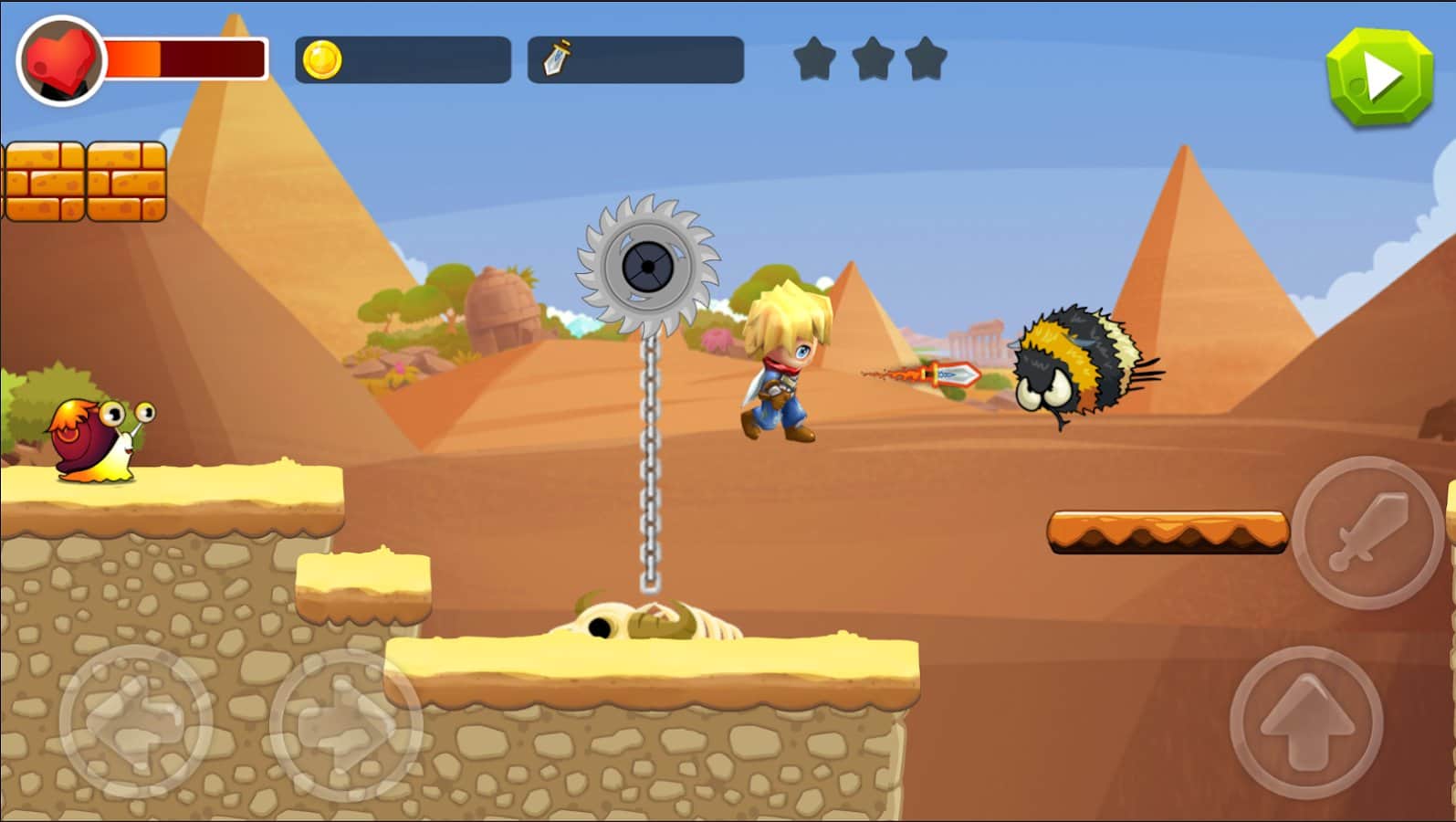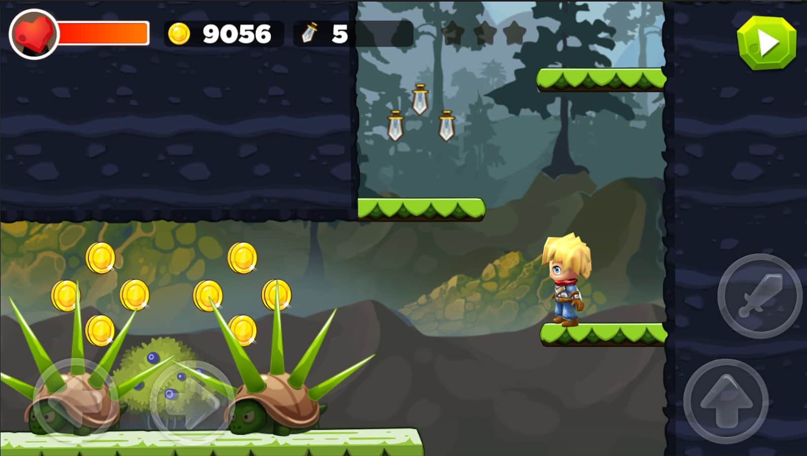 Super Sword Man Adventures – платформер на андроид, где вы будете помогать отважному герою путешествовать по волшебному миру полному врагов. Отправляйтесь в опасное путешествие, наполненное захватывающими сражениями и встречами с новыми героями. Используйте свои навыки и оружие чтобы победить монстров и готовьтесь к встрече с сильными боссами которых не просто будет победить. Бегайте, прыгайте и обходите все преграды у себя на пути и прокладывайте себе путь к победе. Открывайте для себя множество миров таких как: лесной мир, мир пустыни и мир пещер. Начните свое приключение прямо сейчас и насладитесь отличной графикой и многочисленными испытаниями.