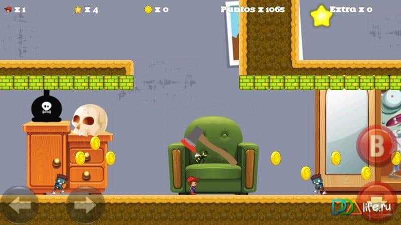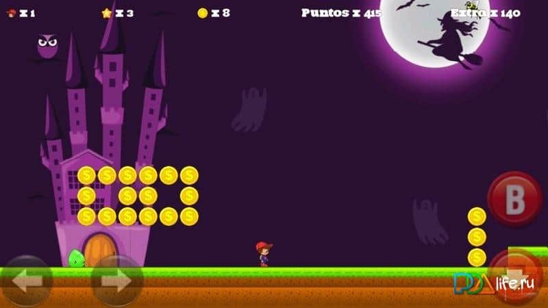 Super Zombie World - Удивительная аркадная игра на андроид, выполненная в ретро стиле. Вас ждет восемнадцать интересных уровней в различных атмосферах и сценах. Пройдите через их все, избегая при этом зомби и монстров. Но также не забывайте собирать монеты. Чем их больше - тем лучше ваш результат в таблице рекордов. Также в каждом уровне есть секретные места, где вас ожидает дополнительная жизнь. Ими не стоит пренебрегать с самого начала прохождения игры, ведь чем дальше вы пройдете, тем сложнее будет уйти от врага. Управление в игре очень простое, и осуществляется при помощи всего четырех виртуальных кнопок.