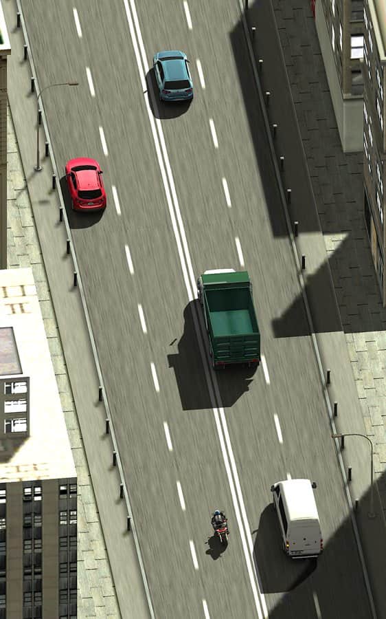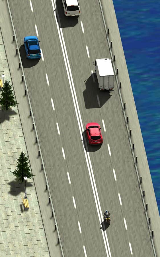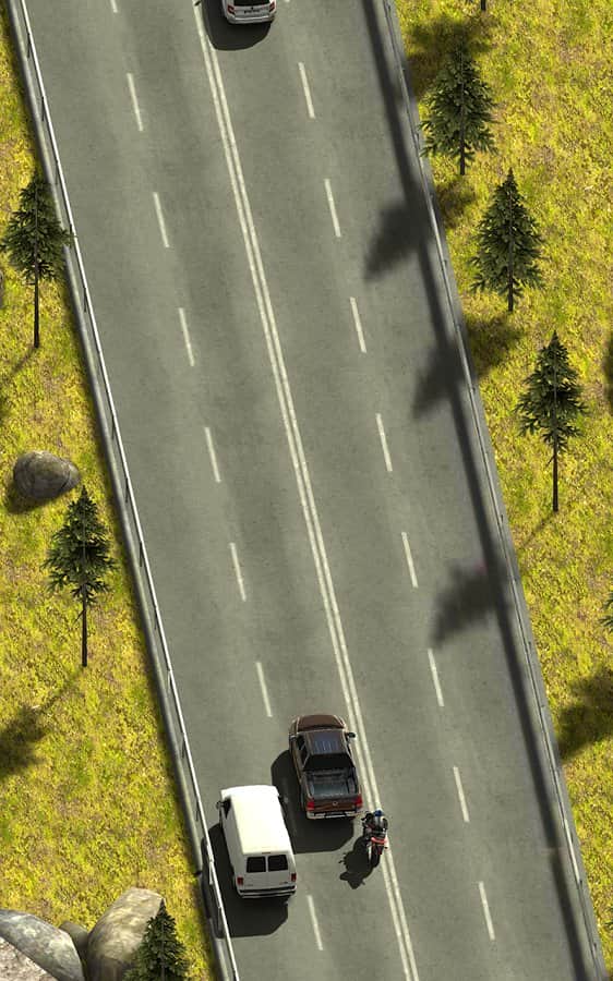 Traffic rider с видом сверху. Я даже сначала поверил, что это их творение. В принципе, раннер неплохой, но скучный и вскоре надоедающий. В игре имеется 2 карты — город(за 5к) и лес(бесплатный); 3 мотоцикла, которые отличаются лишь покраской. Боты неоднократно нарушали правило пересечения двойной сплошной и прятались под мостом, хотя чего ждать от разраба с названием Fast Free Games?