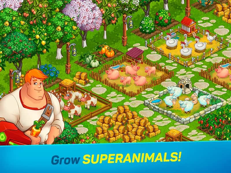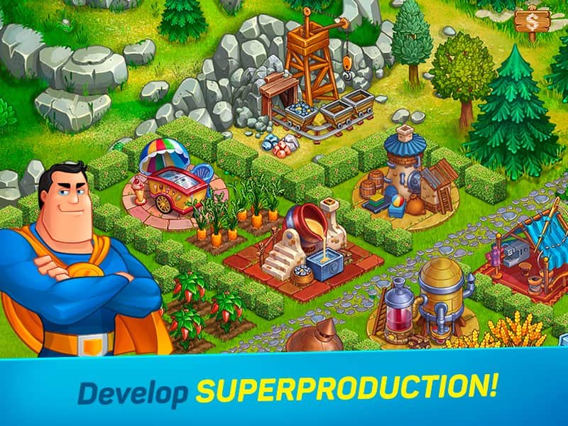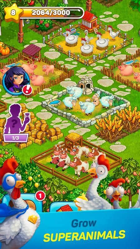 Superfarmers – увлекательная игра на андроид, где вы будете строить супер фермы. В этой игре вашей главной задачей будет построить огромные фермы, которые помогают супер героям выполнять свою работу и обязанности. Создавайте грузовики, сараи, поля и сады и все эти объекты не так просты как вам кажется, грузовик имеет реактивную тягу, сарай это современный и высокотехнологичный информационный центр супер героя. Каждое растение и животное на ферме имеет свое предназначение. Создавайте фермы по всему миру и помогайте супер героям выполнять свою работу.