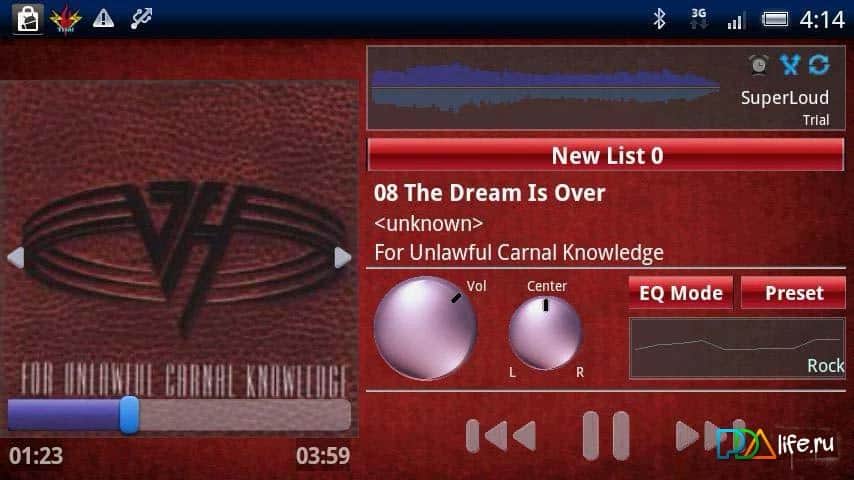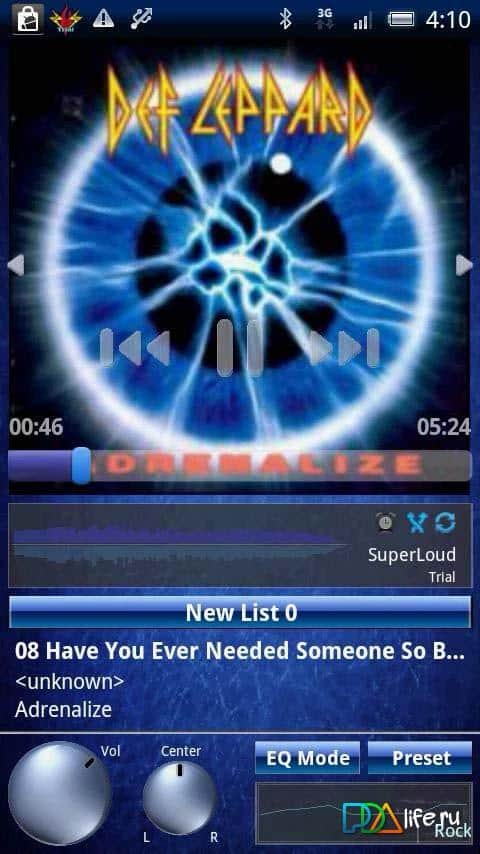SuperLoud Trial, Audio Player – программа на андроид от разработчика CyberFort Japan, которая содержит плеер, эквалайзер, режим, Booster, Dynamic Limiter, Noise подавления и много других различных плюшек, например, таких как: блокировка экрана, таймер сна, темы для оформления, Bluetooth контроллер в рабочем состоянии и прочие. Используемый аудио тип файла: MP3, WAV, ASF, WMA, 3GP, MP4, M4A, AAC, OGG, FLAC. Единственное НО, о чем стоит упомянуть, это то что данная версия бесплатна 7 дней.