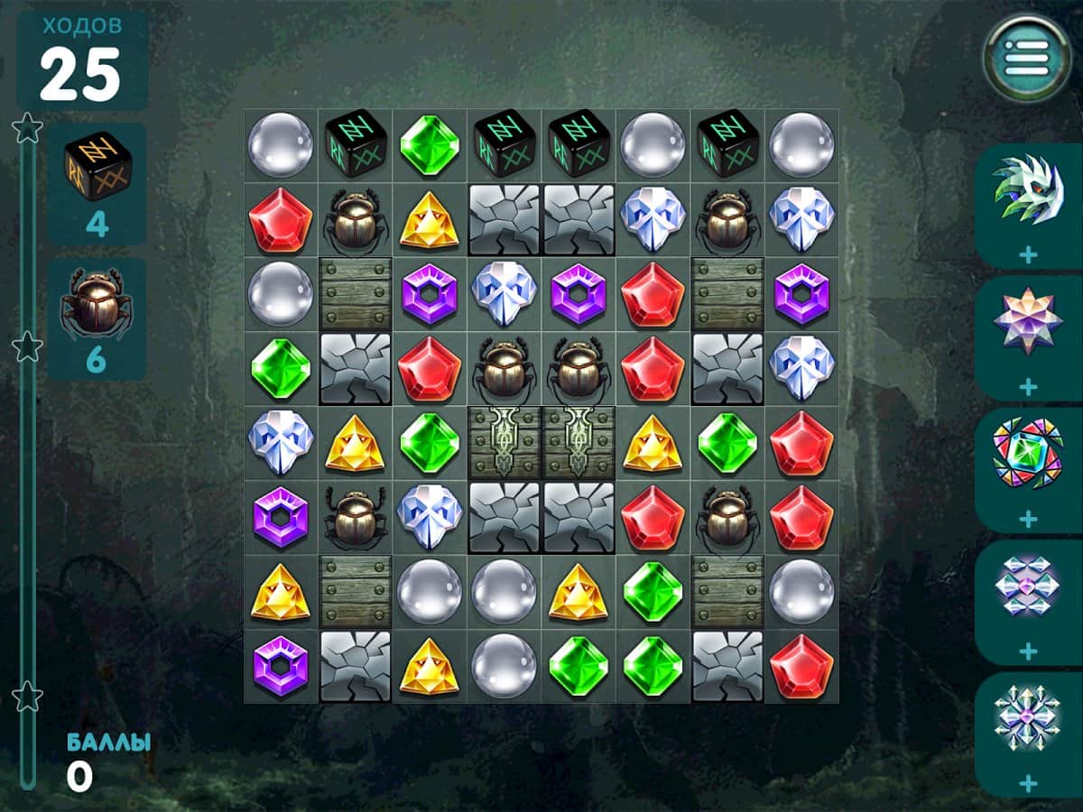 потусторонними силами. Составляйте как можно длиннее ряды из камней и
