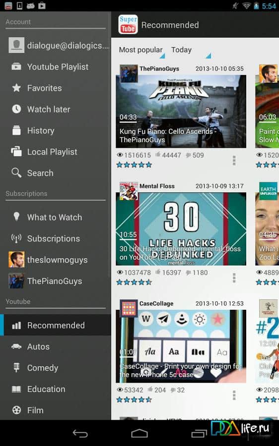 SuperTube -удобный youtube плеер на андроид, для просмотра ваших любимых видеороликов. Программа имеет простой лаконичный интерфейс, с которым разберётся даже новичок. Функциональность тоже на высоте помимо стандартных функций таких как: перемотка пауза, и другие имеются другие полезные фишки, которые станут приятным дополнением при использовании приложения.