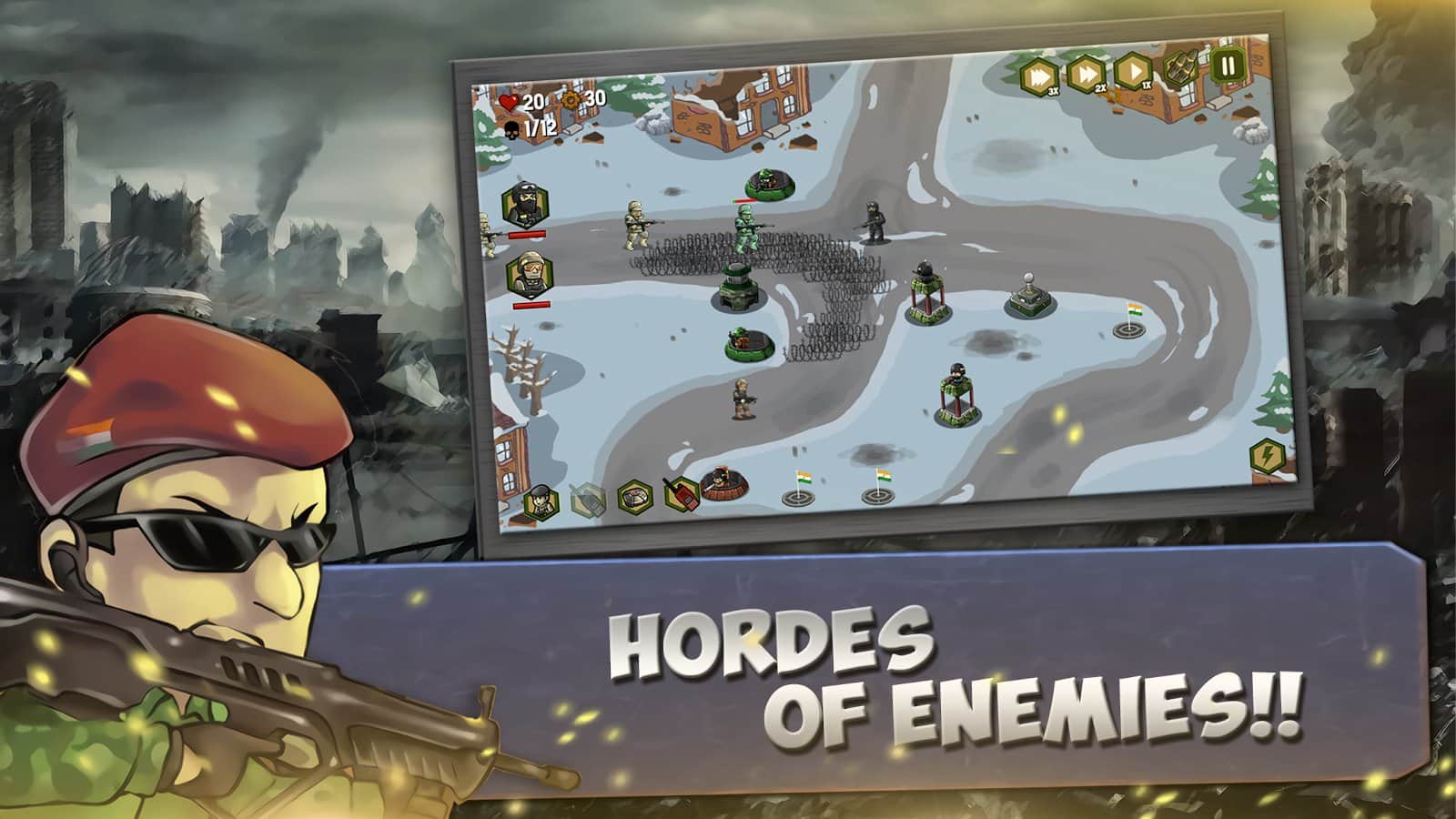 Surgical Strike - Indian Army – отличная стратегия на андроид, где вы будете защищать свою базу от врагов. В этой игре вы возьмете под свой контроль индийскую армию и будете защищать свои земли и базу от нападок террористов. Перемещайтесь по разным частям страны и ведите ожесточённые бои с врагами, расставляя на их пути турели и башни не давая врагам, продвинутся дальше. В игре представлено 10 подразделений, которые будут полностью в вашем распоряжении, и вы сможете управлять военно-морским флотом и военно-воздушными силами. Играйте со своими друзьями в многопользовательском режиме и наслаждайтесь отличной графикой и спецэффектами.