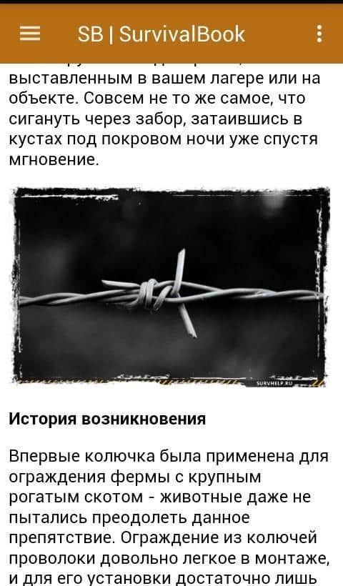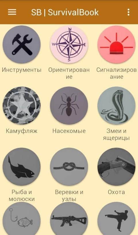 В последнее время тема выживания в различных условиях довольно популярна и просторы интернета пестрят различными статьями и книгами на эту тему. Создатели Survival Book решили собрать все необходимое и полезное и подать это в виде интерактивного приложения для Андроид, что позволит вам не только использовать различные возможности приложения, но и настроить подачу информацию именно по вашему желанию. Полная поддержка русского языка облегчит использование программы.