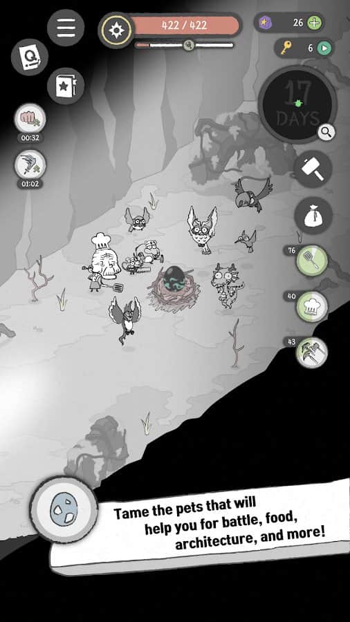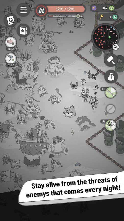 Survivor Mr.Who – ролевая игра на андроид, выполненная в черно-белой графике. В этой игре вы будете возводить убежище для себя и других людей днем, а ночью сражаться с монстрами. Вашей главной задачей в игре будет продержаться как можно дольше и не попасться под руку сильного босса. Твари, которые живут в лесу вылезают из своих нор только по ночам, так что у вас будет предостаточно времени чтобы построить свое убежище и сделать его безопасным. Исследуйте опасный лес и придумывайте новые ухищрения чтобы защититься от монстров.