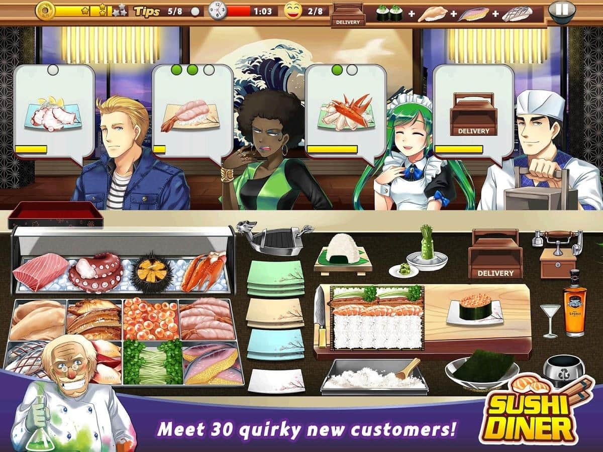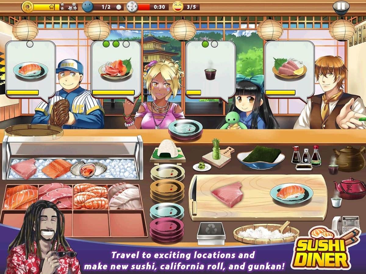 Sushi Diner - Fun Cooking Game – это не просто возможность открыть свой ресторан, здесь вы сможете узнать рецепт приготовления самых вкусных суши. Откройте заведение, которое будет специализироваться на приготовлении китайской и японской кухни и привлеките внимание клиентов. Обставьте зал и купите новую технику, наймите повторов, отправитесь в путешествие, чтобы разведать самые кучные рецепты роллов и суши и удивляйте своих посетителей. Прокачайте навыки и выполняйте заказы как можно быстрее, зарабатывайте деньги и приобретайте славу.