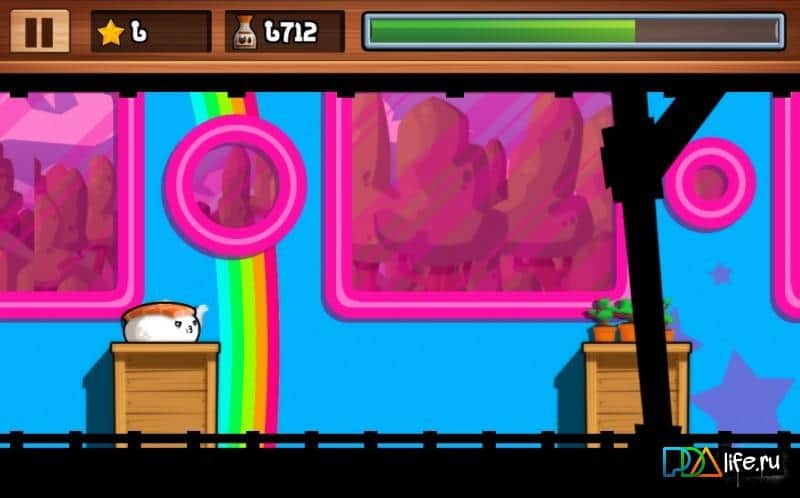 Sushi Sutory – аркада на андроид, где вы будете управлять главным героем, который имеет вид суши. В этой игре вы должны помочь главному герою совершить побег, не давая людям окунуть вас в соевый соус и съесть. Совершайте невероятные прыжки и передвигайтесь строго по платформам, не нападая на землю, если вы упадете, то игра для вас закончиться. Собирайте по пути многочисленные монетки и разблокируйте многочисленные и разнообразные вещи для вашего героя. Проходите увлекательные мини-игры которые порадуют вас своим разнообразием. Играйте в эту игру и наслаждайтесь отличной яркой графикой и бонусами.