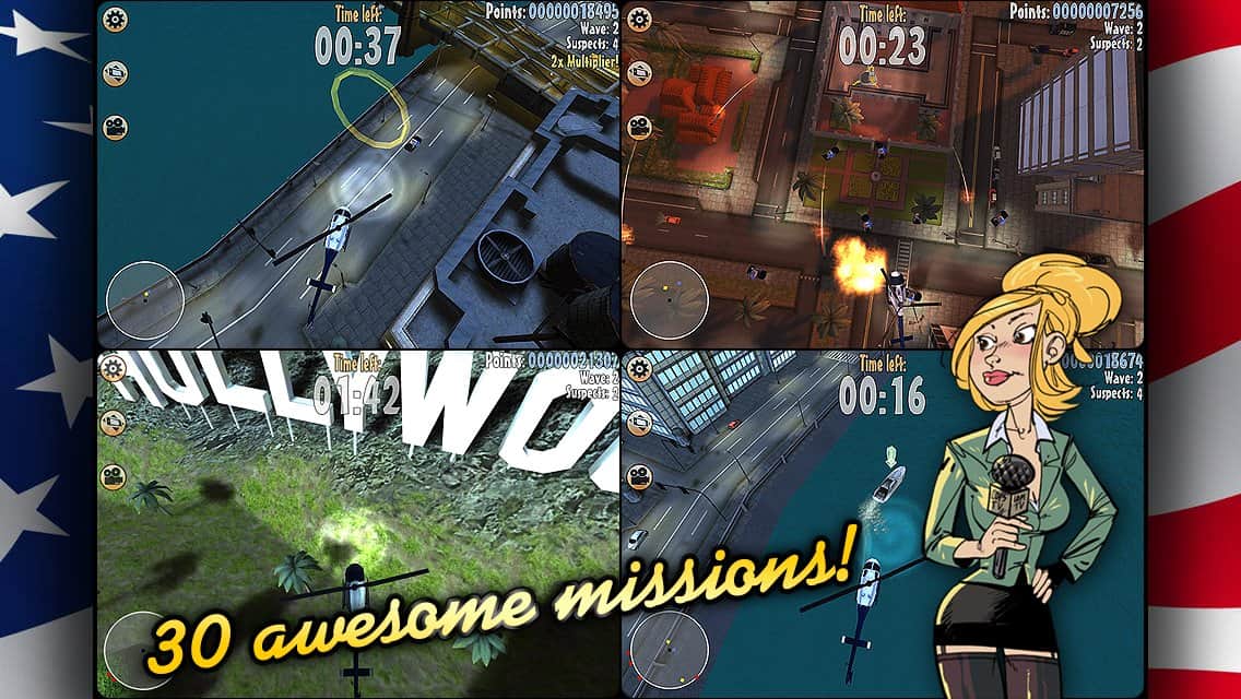 Suspect In Sight! - игра на аndroid, является увлекательной полицейской погоней за преступником. Попробуйте себя в роли Роба, сотрудника полиции, который хочет поймать преступника скрывающегося на свободе, для этого используйте вертолет и ваше внимание. Наведите порядок в трех великих американских городах - Майами, Нью-Йорке и Лос-Анджелесе.