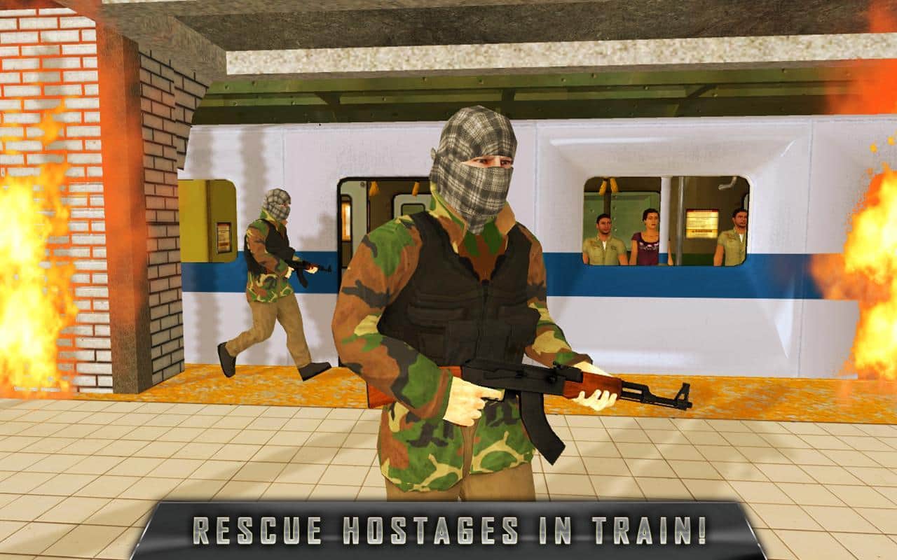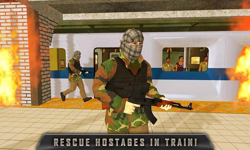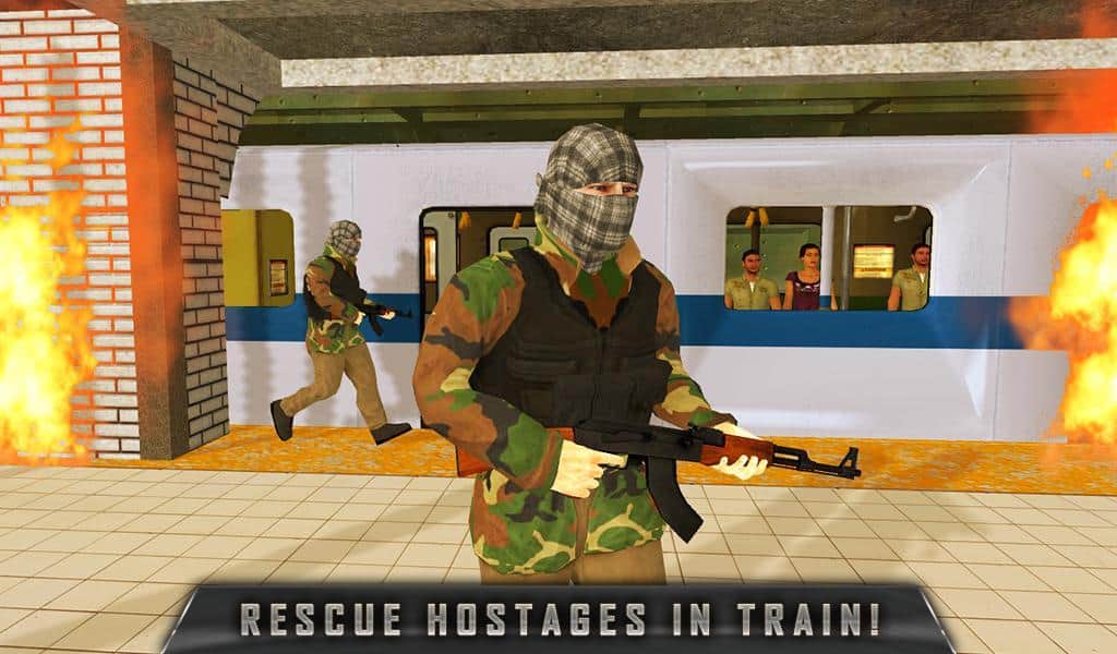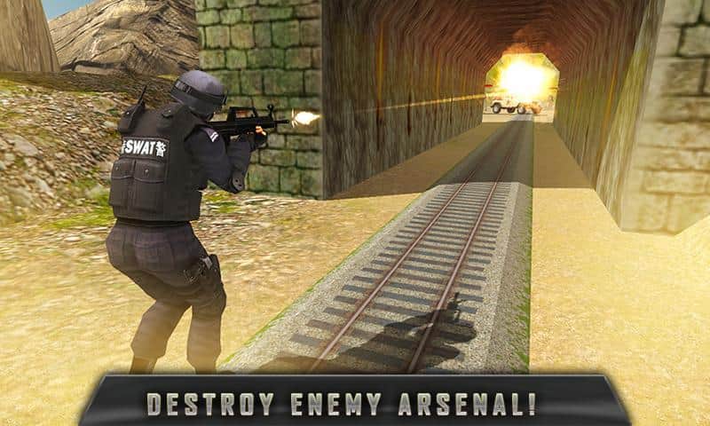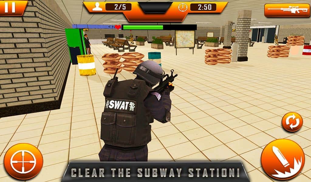 SWAT Train Mission Crime Rescu – станьте бойцом спецподразделения по уничтожению террористов. В этой игре вам выпадет не простая миссия по уничтожению террористов, которые захватили поезд и здание вокзала. Перемещайте по вагонам движущегося поезда и помогите заложникам оказаться на свободе. Выбирайте удобное положение и используйте укрытия, чтобы уничтожить всех террористов. Используйте снайперскую винтовку и метьтесь точно в голову, чтобы выполнить миссию. Перемещайтесь по различным локациям и выполняйте 10 неповторимых миссий, применяя для этого различное оружие. Игра порадует вас захватывающим и динамичным игровым процессом и многочисленными врагами.