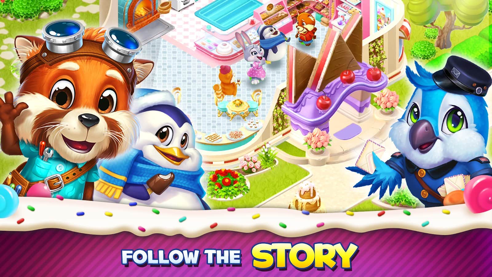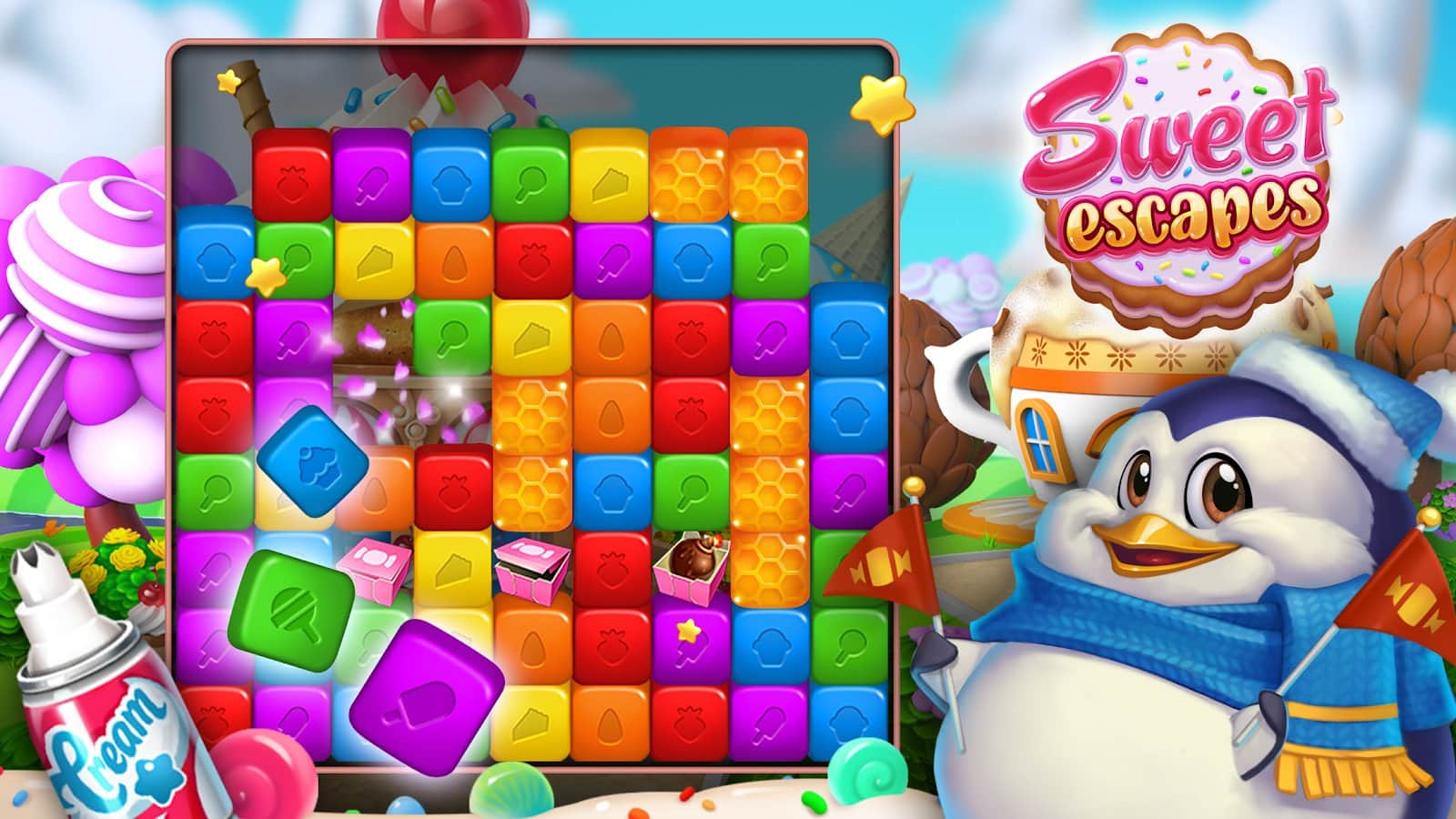 Sweet Escapes: Design a Bakery with Puzzle Games – логическая игра на андроид, с десертной темной из жанра три в ряд. В этой игре вы будете составлять ряды из трех и более объектов и набирать очки, которые позволят вам строить свои магазины. Создавайте свои магазины и готовьте в них превосходные десерты, пирожные и молочные коктейли. Подходите творчески к созданию каждого магазина и сделайте его уникальным, подбирая интерьер и мебель. Открывайте для себя новые рецепты и готовьте вкусную выпечку запах, который привлечет к вам больше клиентов. Составляйте ряды из объектов и проходите сложные уровни.