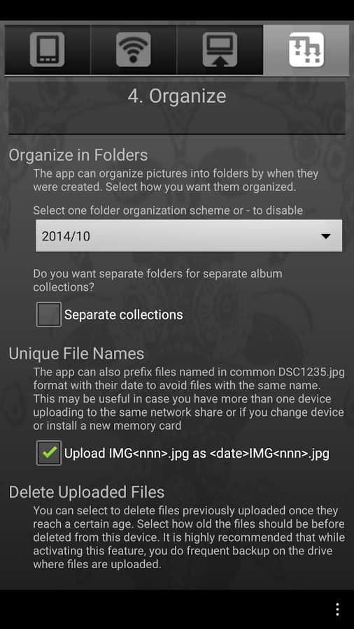 Sweet Home WiFi Picture Backup - приложение позволяющее с лёгкостью сохранять ваши любимые фотографии или видеоролики на ваш персональный компьютер или устройство NAS по интернет сети wi-fi. Если не хотите в ручную заниматься копированием, тогда в настройках выставите «автоматическое копирование» и фотографии с видео файлами будут автоматически попадать на ваш компьютер. Есть возможность автоматической передачи данной в момент зарядки вашего телефона посредством USB кабеля. Все файлы будут хранится в папкам отсортированным по датам – это очень удобно. Приложение прекрасно работает с Instagram.