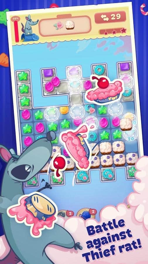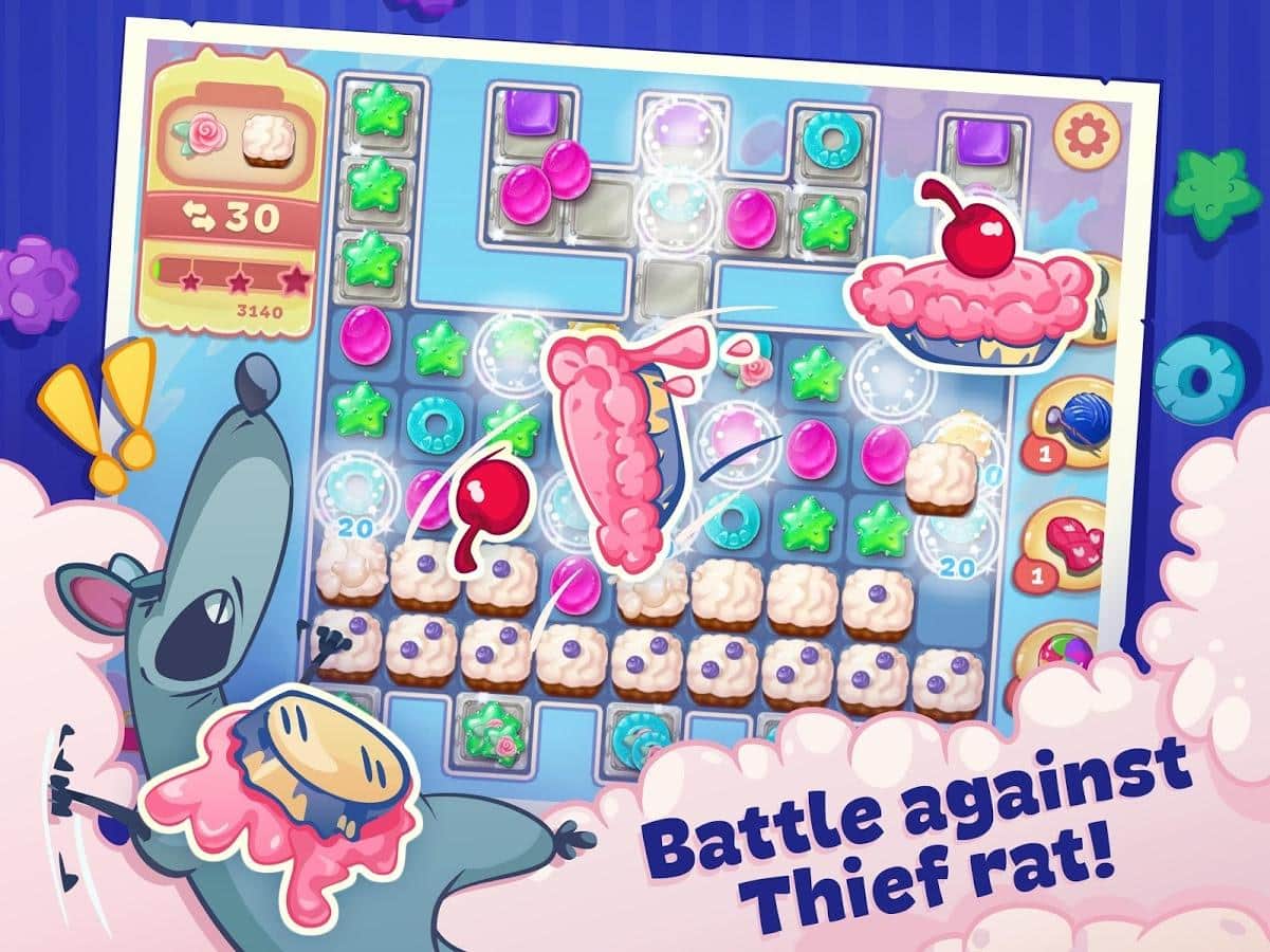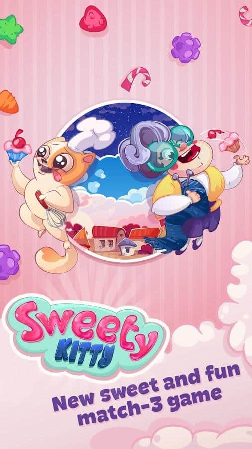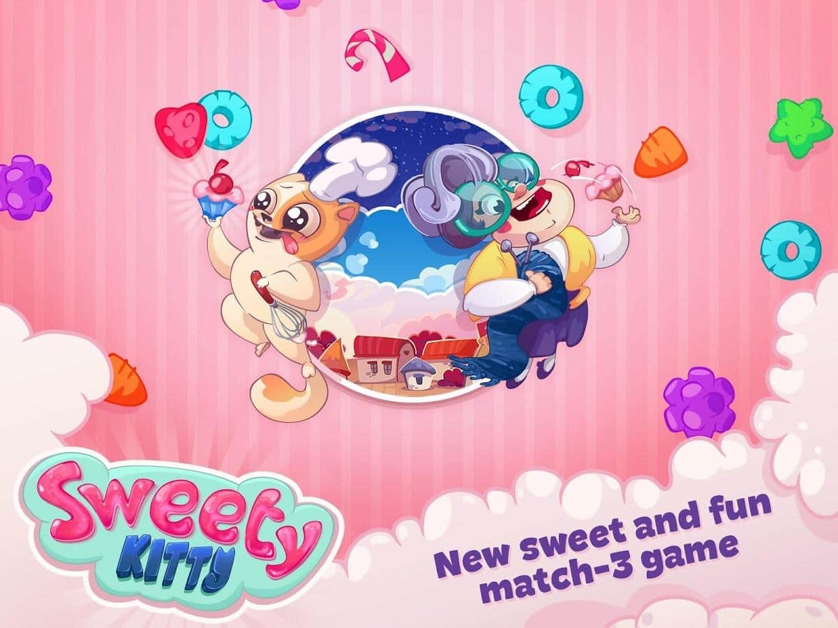 Sweety Kitty – игра из жанра три в ряд на андроид, где вы будете помогать милому котику, стать лучшим шеф-поваром. Наш герой путешествует по всему миру и собирает различные рецепты в свою кулинарную книгу, но на его пути встали коварные крысы, которые мешают ему стать самым лучшим поваром. Составляйте длинные ряды из различных сладостей и подключайте всю свою логику и сообразительность, чтобы без труда проходить все уровни игры. Применяйте многочисленные усиления и бонусы и как можно быстрее проходите все уровни. Побеждайте коварных крыс и не дайте им разрушить ваши планы. Игра порадует вам многочисленными и разнообразными вкусными уровнями.