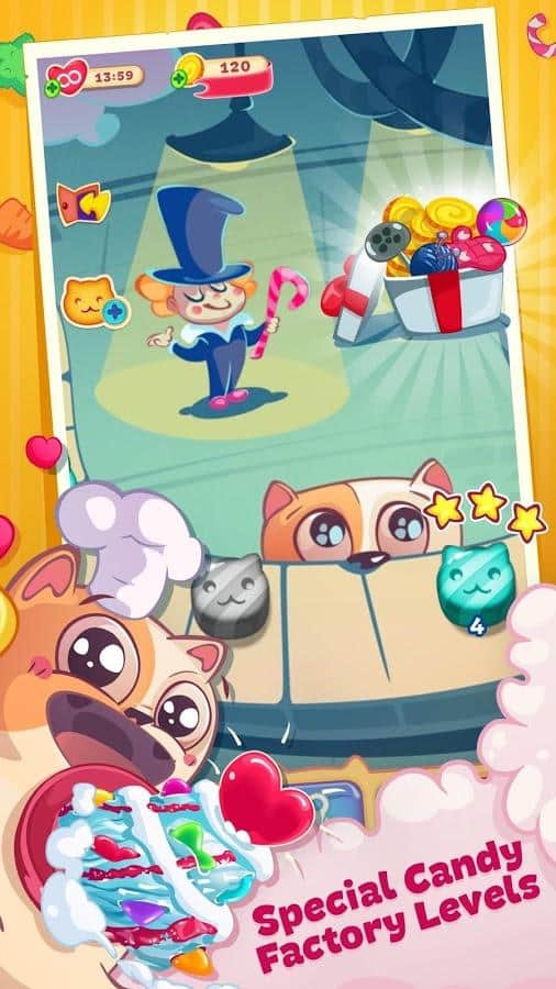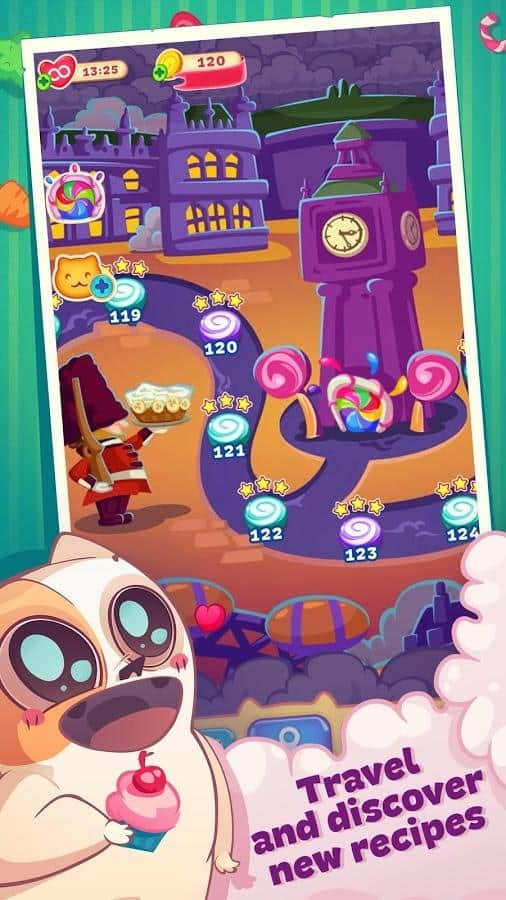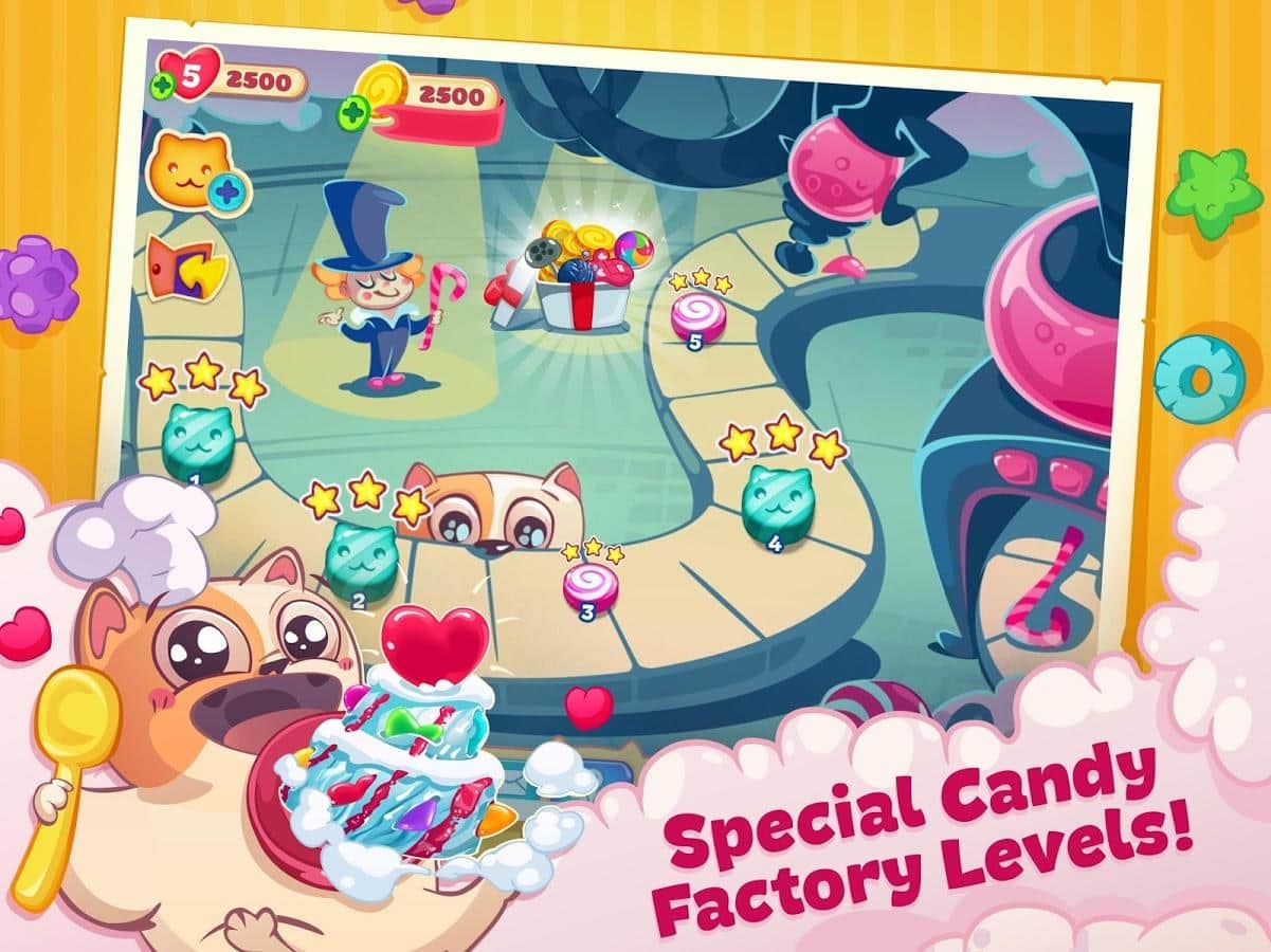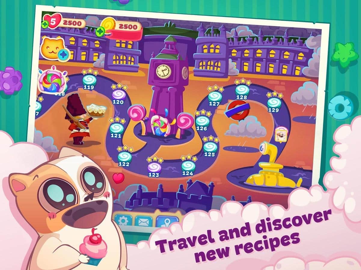 Sweety Kitty – игра из жанра три в ряд на андроид, где вы будете помогать милому котику, стать лучшим шеф-поваром. Наш герой путешествует по всему миру и собирает различные рецепты в свою кулинарную книгу, но на его пути встали коварные крысы, которые мешают ему стать самым лучшим поваром. Составляйте длинные ряды из различных сладостей и подключайте всю свою логику и сообразительность, чтобы без труда проходить все уровни игры. Применяйте многочисленные усиления и бонусы и как можно быстрее проходите все уровни. Побеждайте коварных крыс и не дайте им разрушить ваши планы. Игра порадует вам многочисленными и разнообразными вкусными уровнями.